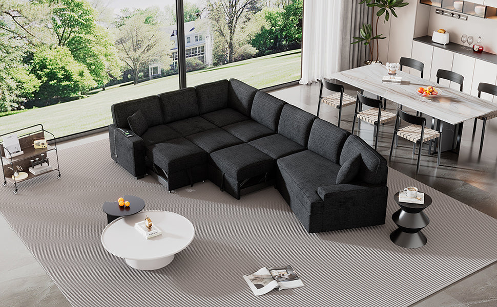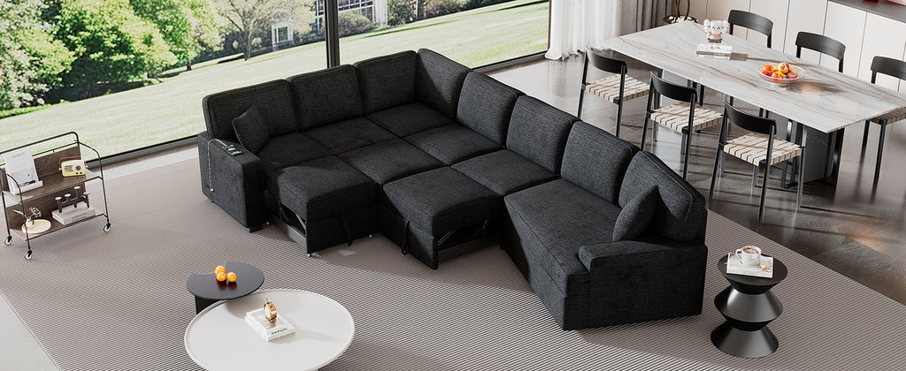- Convenient Pull-out Sofa Sleeper - Transform the L-shaped sofa into a cozy bed effortlessly with the assistant of handle straps and smooth wheels, whether it's for overnight guests to sleep or for your leisure and relaxation, it can easily meet your requirements.