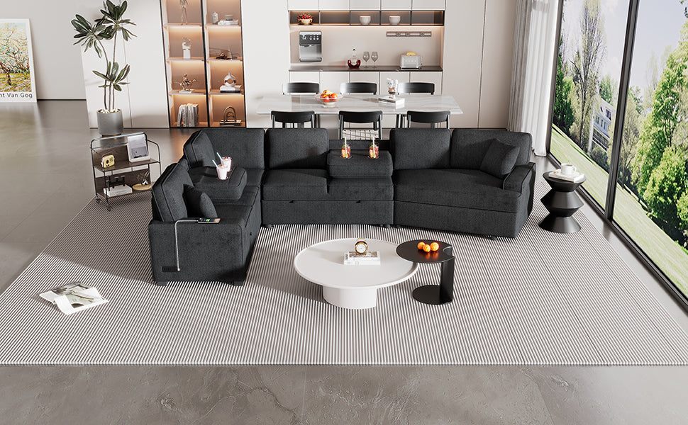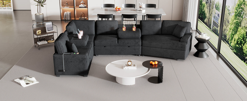 - Drop-down Tables with Cup Holders - This convertible sofa comes with two drop-down tables with cup holders under the backrests, where you can place drinks and snacks when you enjoy your leisure time on it.