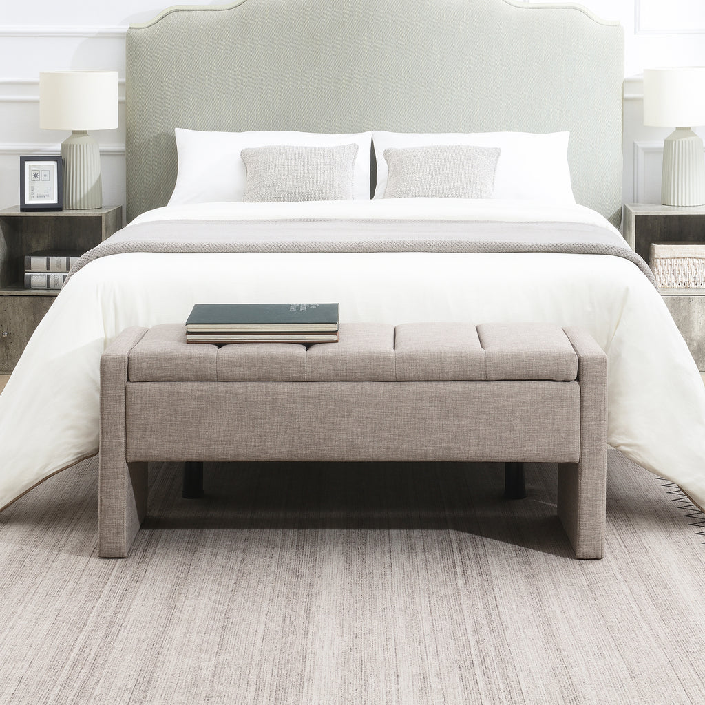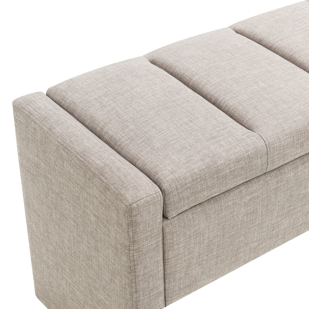 - The surface of this ottoman with storage is made of very comfy touch Linen fabric, with neat stitching and exquisite beauty, Built-in high-density foam provides a soft, supportive and breathable seat for optimal comfort.