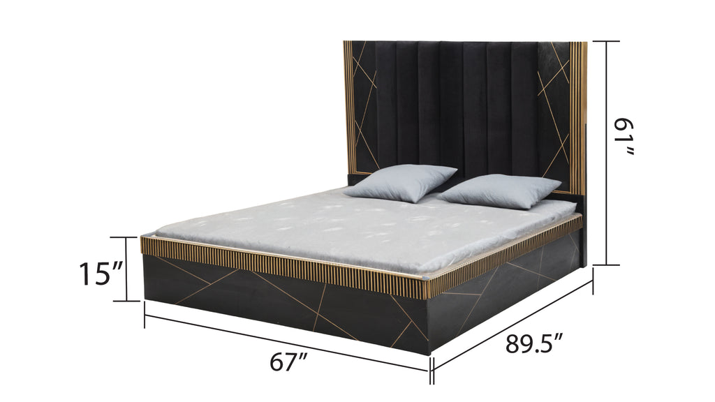 Available in both queen and king sizes, this bed boasts a solid mango wood frame with meticulously handcrafted brass metal cladding accents. Its elegant black finish with artisanal metalwork adds both style and durability to your bedroom. It serves as a sturdy and stylish centerpiece for your sleeping space