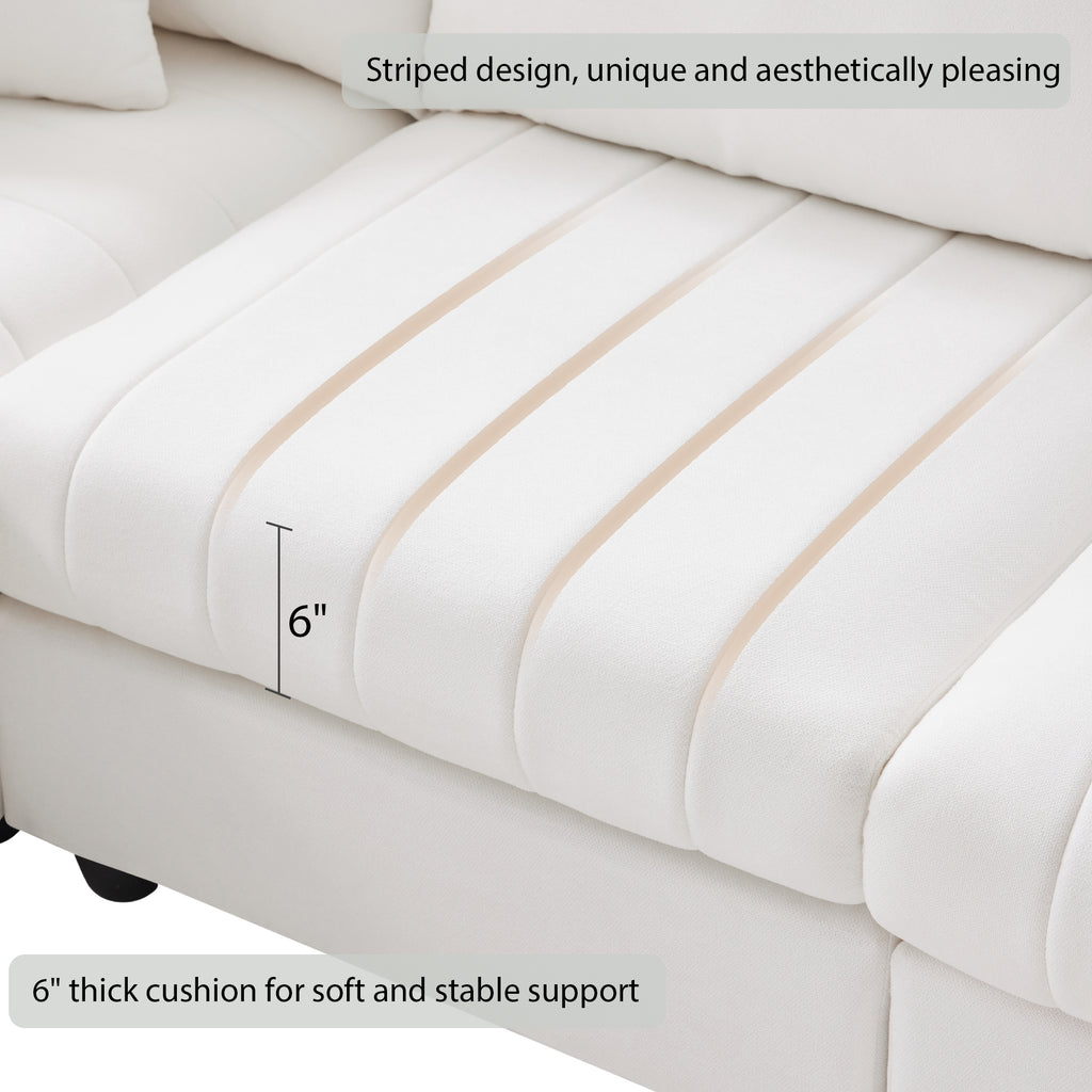 - Striped Cushion Design: The cushions feature a stylish vertical stripe design that adds texture and visual interest to the sofa. The vertical stripes not only enhance the aesthetic appeal, giving the sofa a modern, chic look, but they also help to elongate the visual space in a room. This design is both trendy and practical, providing a subtle yet elegant touch that can easily blend with various interior décor styles.