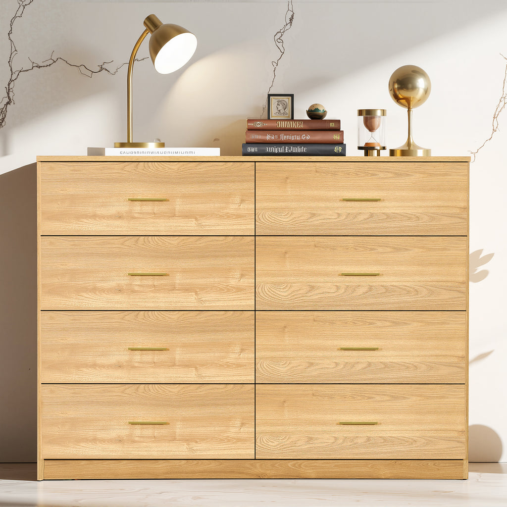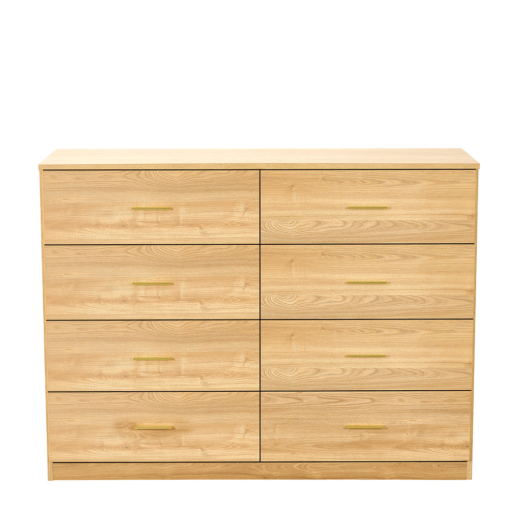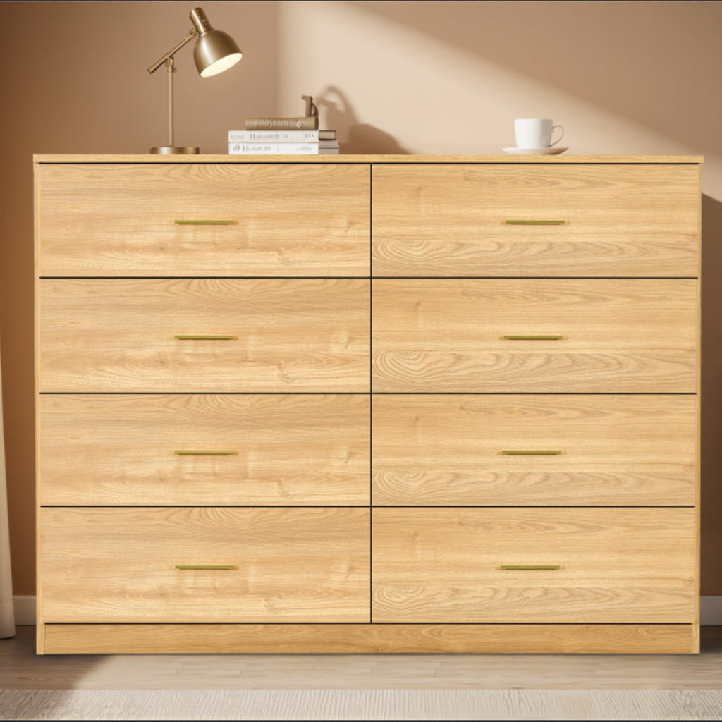 With its timeless design and sleek Natural finish, this dresser effortlessly blends with any decor style. Featuring eight spacious drawers, this dresser provides ample storage space for all your clothing, accessories, and essentials. Organize your belongings conveniently and keep your bedroom clutter-free. Crafted from high-quality engineered board, this dresser is sturdy and safe for everyday use. The waterproof surface ensures durability, while the smooth texture adds a touch of elegance. Whether you have a large bedroom or a cozy space, this 8-drawer dresser is designed to fit seamlessly. Its versatile design makes it suitable for any bedroom size or layout. Upgrade your bedroom with our Classic 8-Drawer Dresser today. Experience the perfect combination of style, functionality and durability.