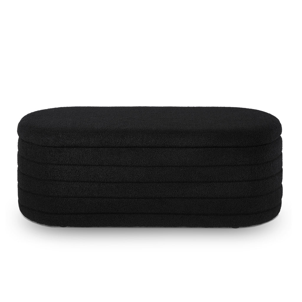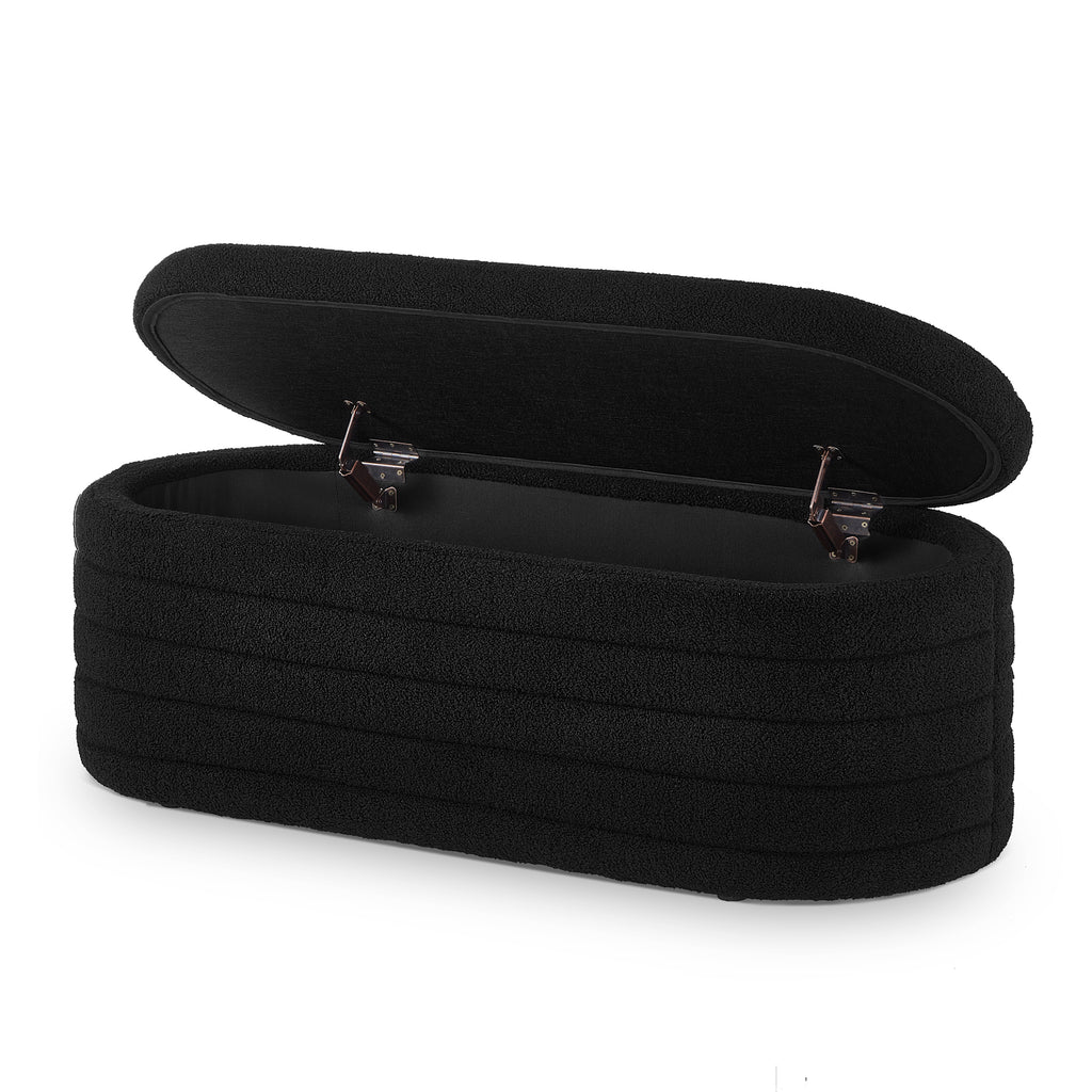 This oval storage bench exudes elegance and practicality, featuring a teddy fabric that provides a soft and comfortable seating experience. The luxurious material not only adds a touch of refinement but also ensures a cozy and inviting feel for users.