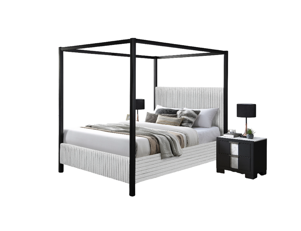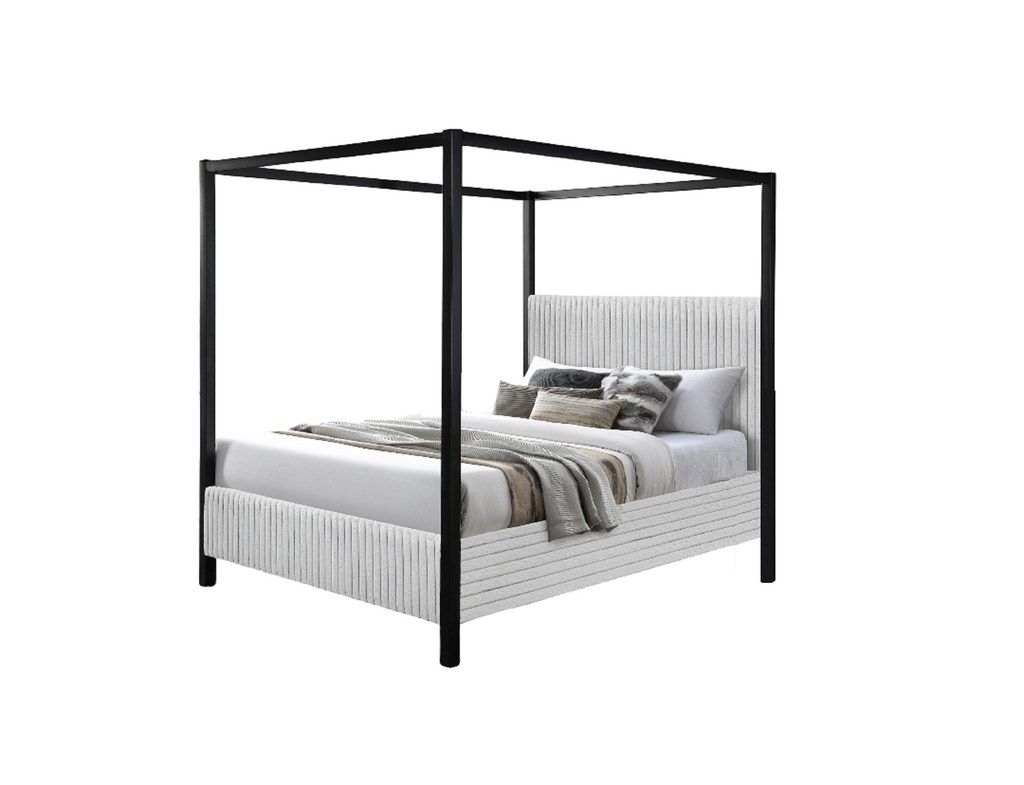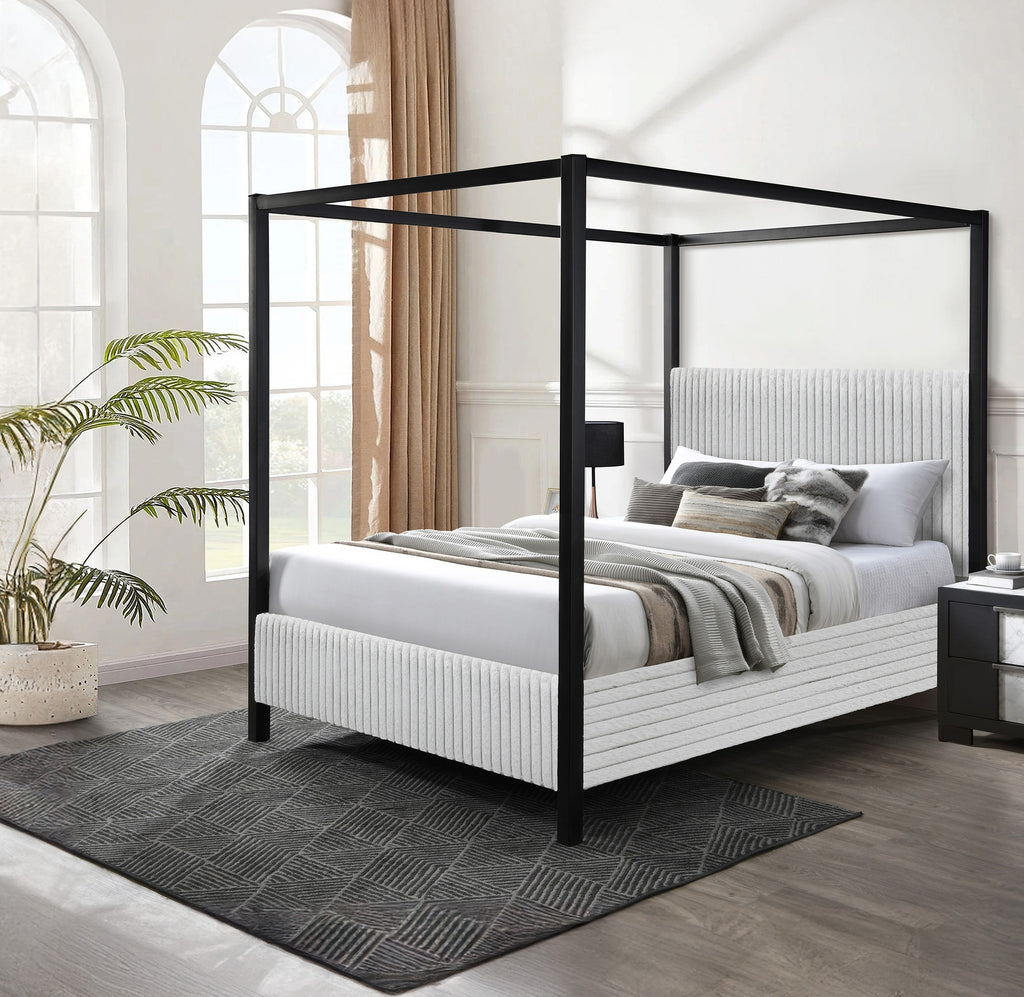 Redefine luxury and style in your bedroom with this stunning canopy bed, designed to make a bold yet elegant statement. Its sleek, minimalist frame provides a modern take on timeless sophistication, while the upholstered headboard, featuring soft vertical channeling, adds texture and an inviting touch of comfort. Perfectly suited for creating a cozy sanctuary, the open canopy design offers endless opportunities for customization with drapes, lights, or greenery to reflect your unique style. Transform your space into a serene retreat that combines contemporary aesthetics with unparalleled comfort and versatility.