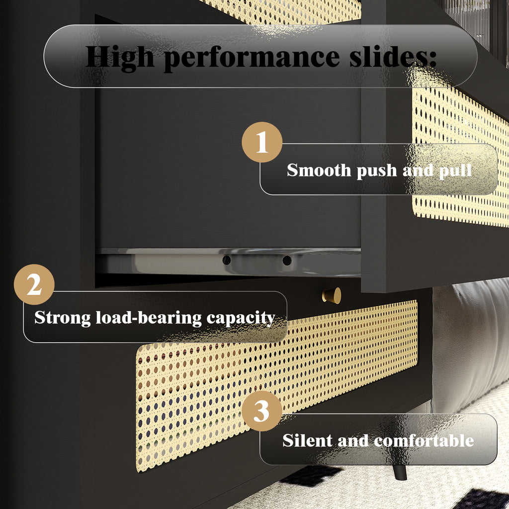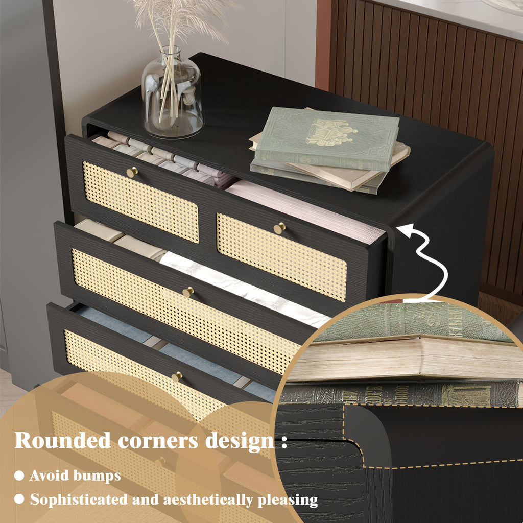 - The 4-drawer dresser with simple design. Various decoration styles are compatible with this modern minimalist 6 drawer chest. Adding rattan door and classic gold metal handle to the simple monochromatic wood panel adds advanced aesthetics to this product.
