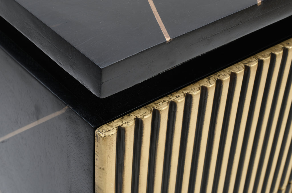 - Solid mango wood construction with meticulously handcrafted metal cladding accents.