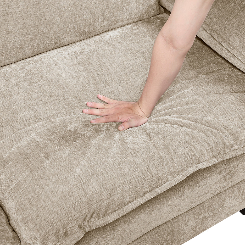 This expansive 5-piece modular sectional sofa set, featuring four armless chairs and one corner seat, offers unparalleled flexibility and contemporary style for any living area. Each piece is meticulously upholstered in sumptuously soft chenille fabric, providing an inviting texture and a sophisticated aesthetic that seamlessly integrates with a diverse range of interior designs. Exceptional comfort is a cornerstone of this set, thanks to high-density foam padding over resilient pocket coils, ensuring consistent plushness and robust support for years of enjoyment, with each individual seat boasting a substantial weight capacity of 300 lbs. Constructed with durable plywood frames and accented by chic exposed feet with a black faux wood finish, this sectional promises both enduring quality and a refined touch to your home. With reversible back and loose seat cushions, complete with practical removable zippered covers, maintenance is effortlessly simple, ensuring your modular sofa remains a beautiful and comfortable haven for all.