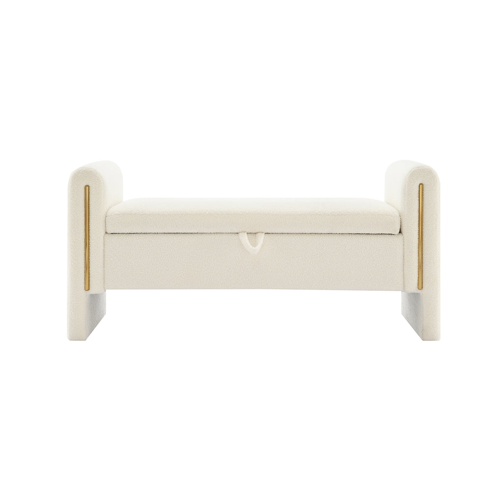 - The surface of this ottoman with storage is made of very comfy touch teddy fabric, with neat stitching and exquisite beauty, and is equipped with metal decorative strips on both sides, creating an elegant and luxurious look. Built-in high-density foam provides a soft, supportive and breathable seat for optimal comfort.