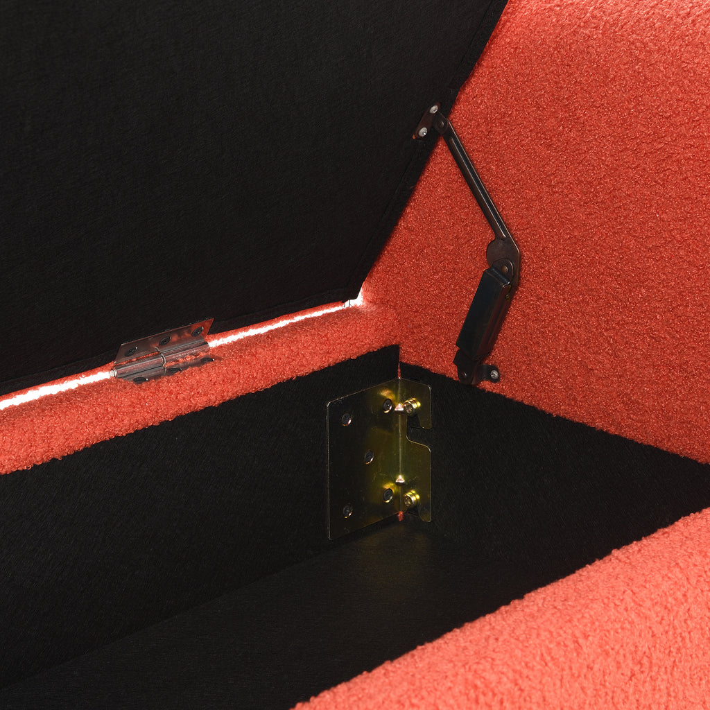 - The surface of this ottoman with storage is made of very comfy touch teddy fabric, with neat stitching and exquisite beauty, and is equipped with metal decorative strips on both sides, creating an elegant and luxurious look. Built-in high-density foam provides a soft, supportive and breathable seat for optimal comfort.