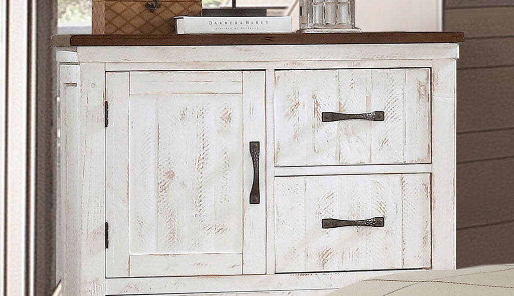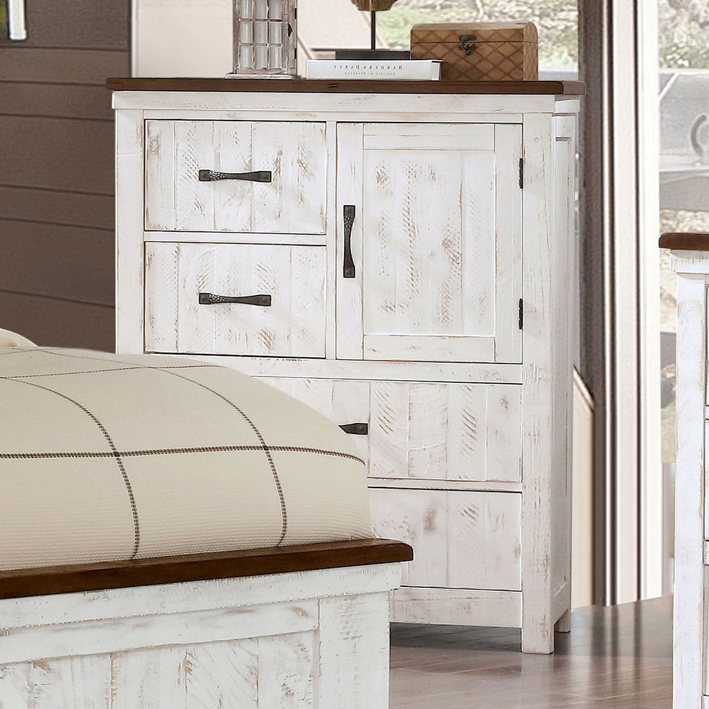 A distressed-white finish highlights this chest and establishes a mood of antique integrity. Featuring French dovetail construction, felt-lined drawers, and cabinets, this is a chest to not only enjoy but to take seriously. It is elegance defined.