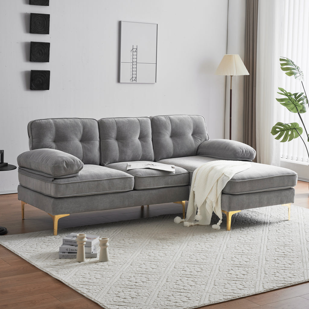 - Cloud-like comfort - Upholstered in an incredibly soft velvet fabric that looks and feels amazing. With soft seats and back cushions filled with foam and wrapped with velvet, the corner sofa is sure to offer maximum support and comfort. Sink into pure bliss with our cloud-like comfort that will make you never want to leave your sofa.