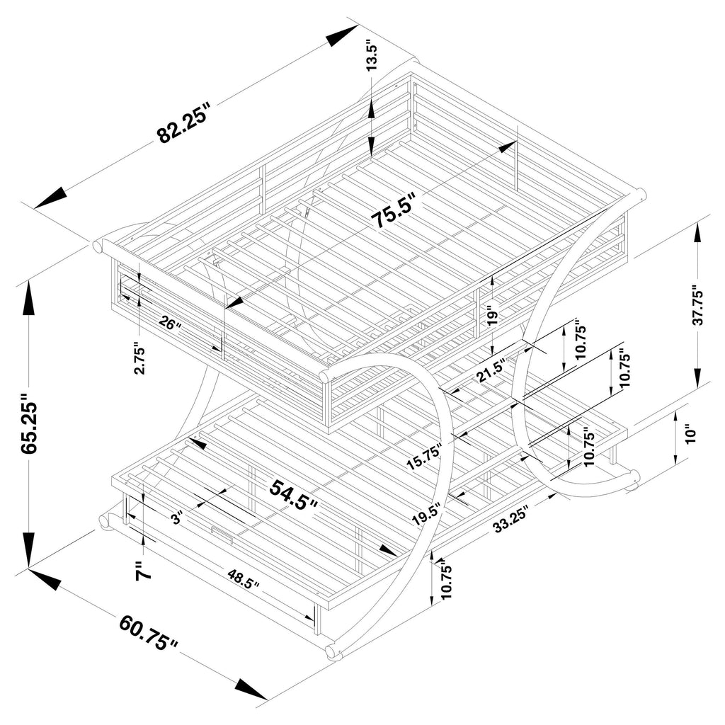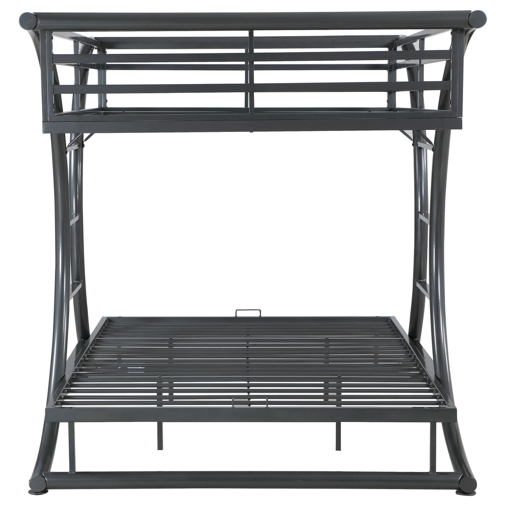 - Heavy duty metal bunk bed features a sleek gunmetal finish, combining durability with modern industrial style