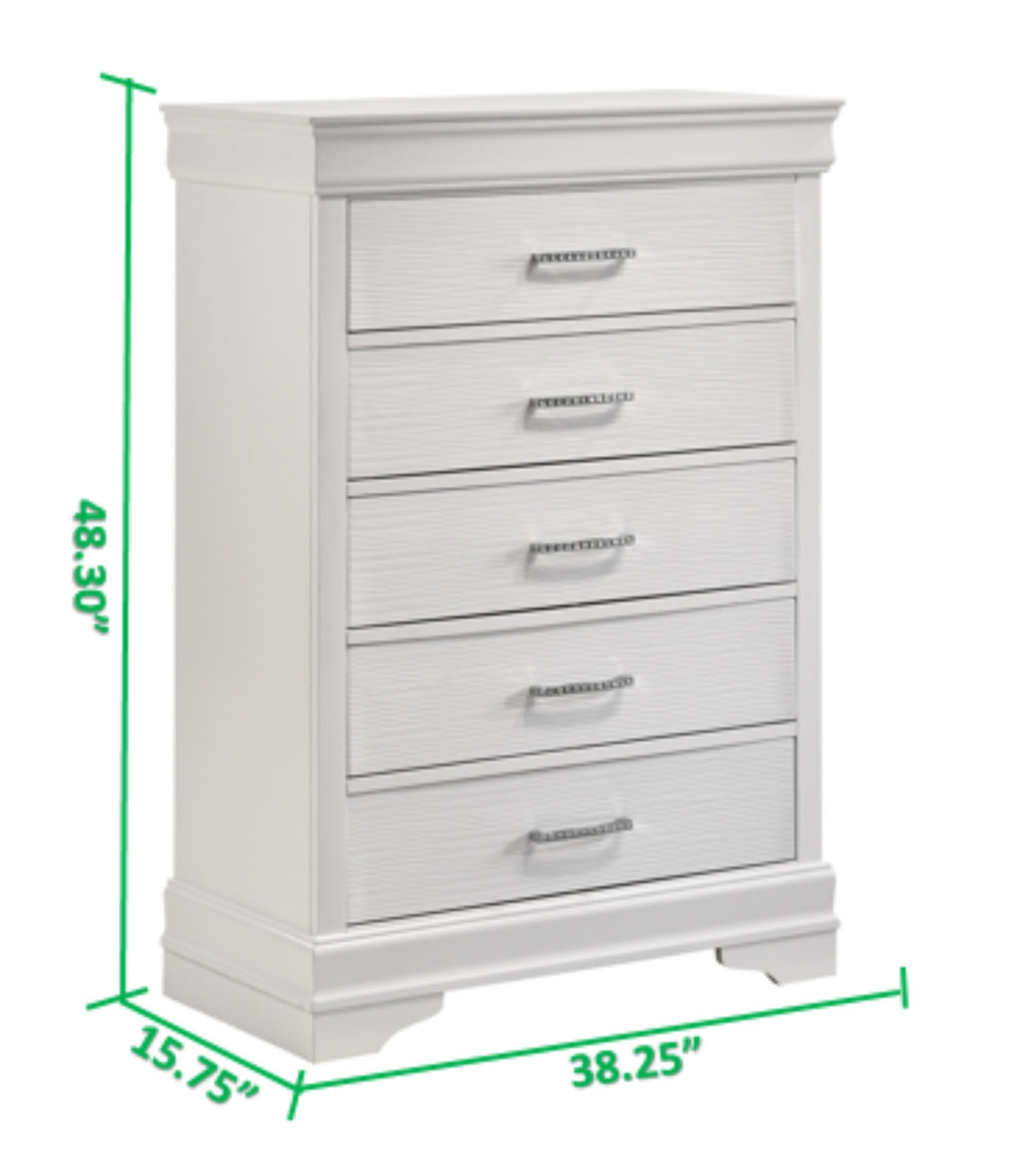 Whether you use it for clothing, accessories, or other essentials, this 5-drawer chest is the perfect addition to your bedroom decor, offering both practicality and sophistication. Includes 5-Drawer Chest.