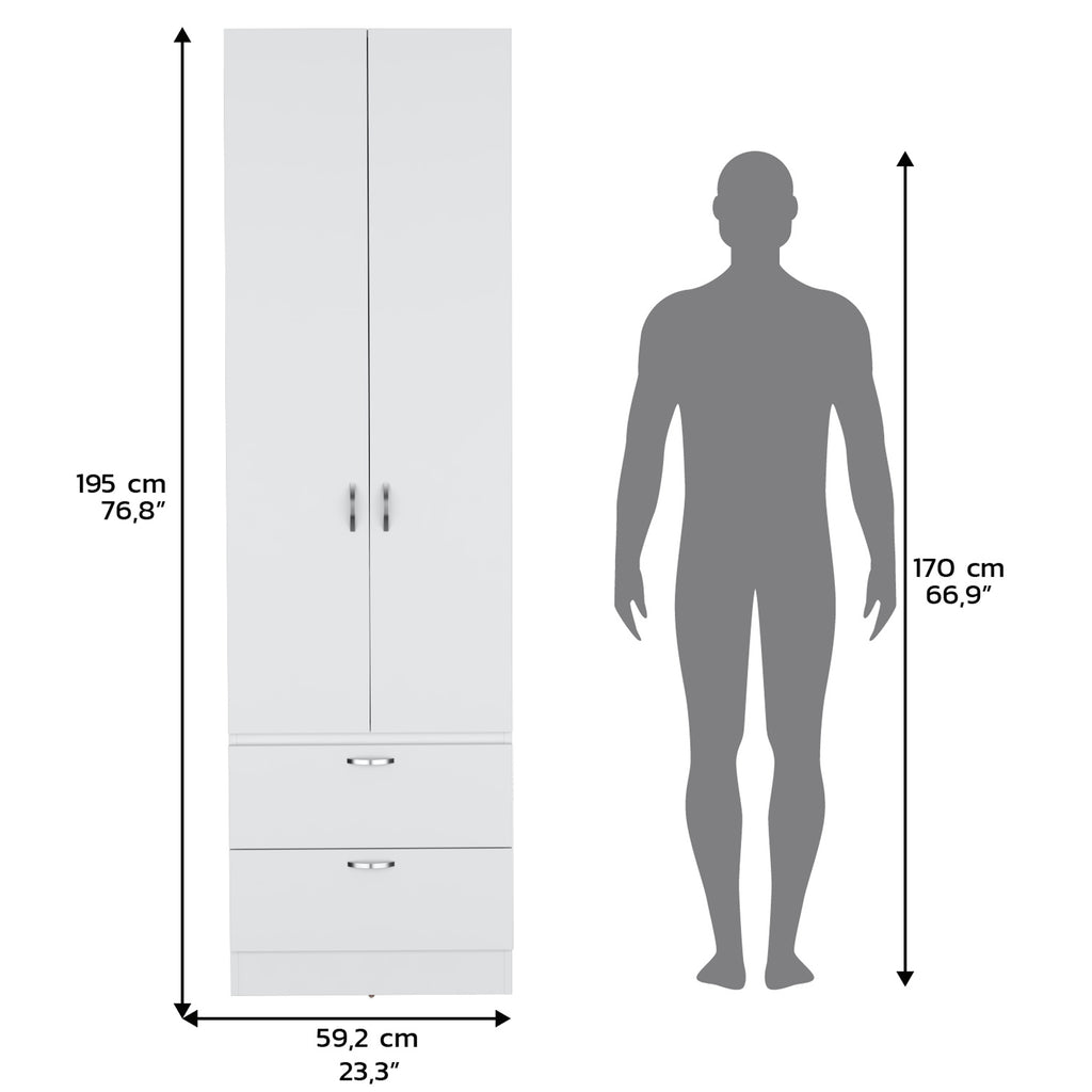 - The wardrobe has two doors that opens and closes smoothly. The doors has a sleek design that complements the overall look of the wardrobe.