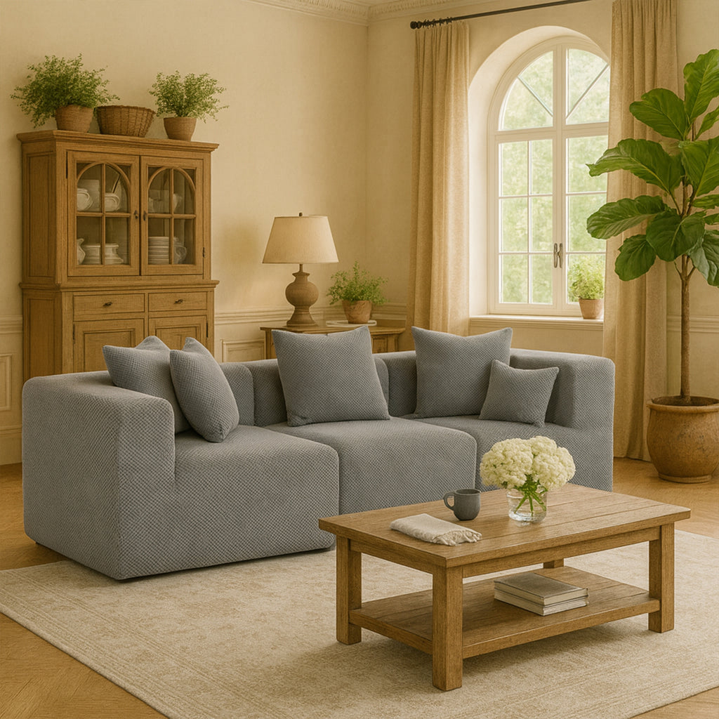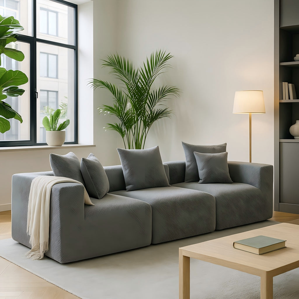 - Configurable Modularity: Three freestanding modules let you tailor left/right-chaise layouts or recompose the seating to suit rooms and traffic flow.