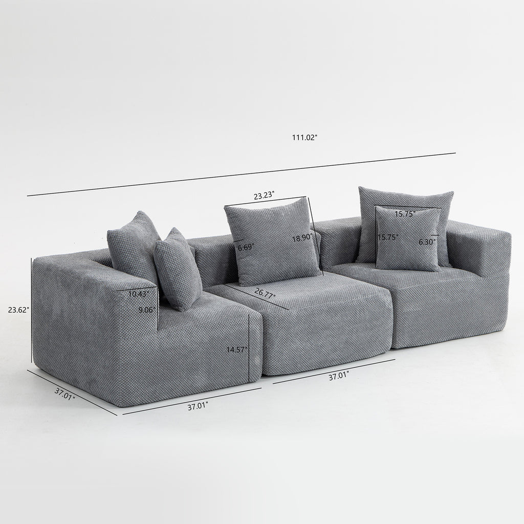 - Architectural, Low-Profile Silhouette: Modern 3-seat modular sectional with a refined 23.62' H profile and generous 111.02' W × 37.01' D footprint (282 × 94 × 60 cm), crafted for expansive lounging.