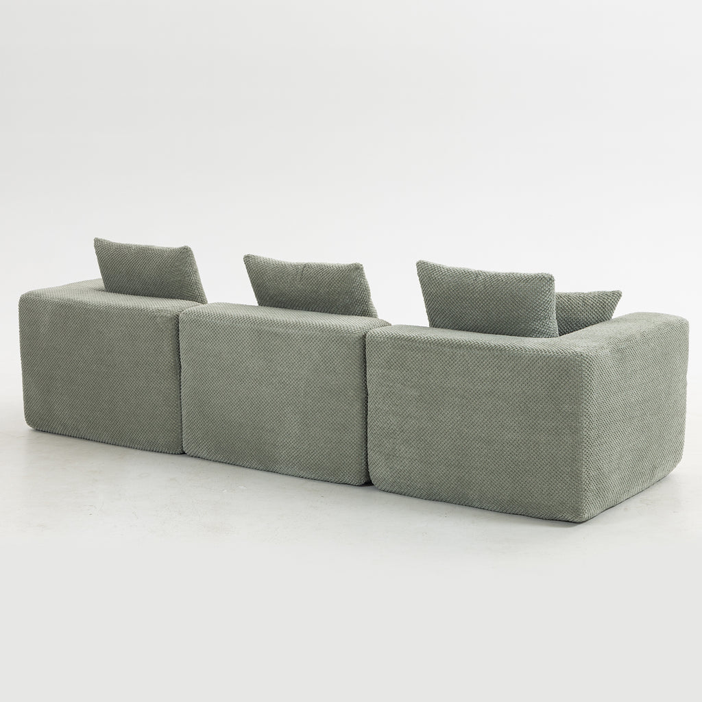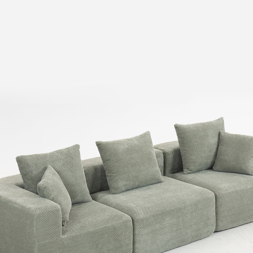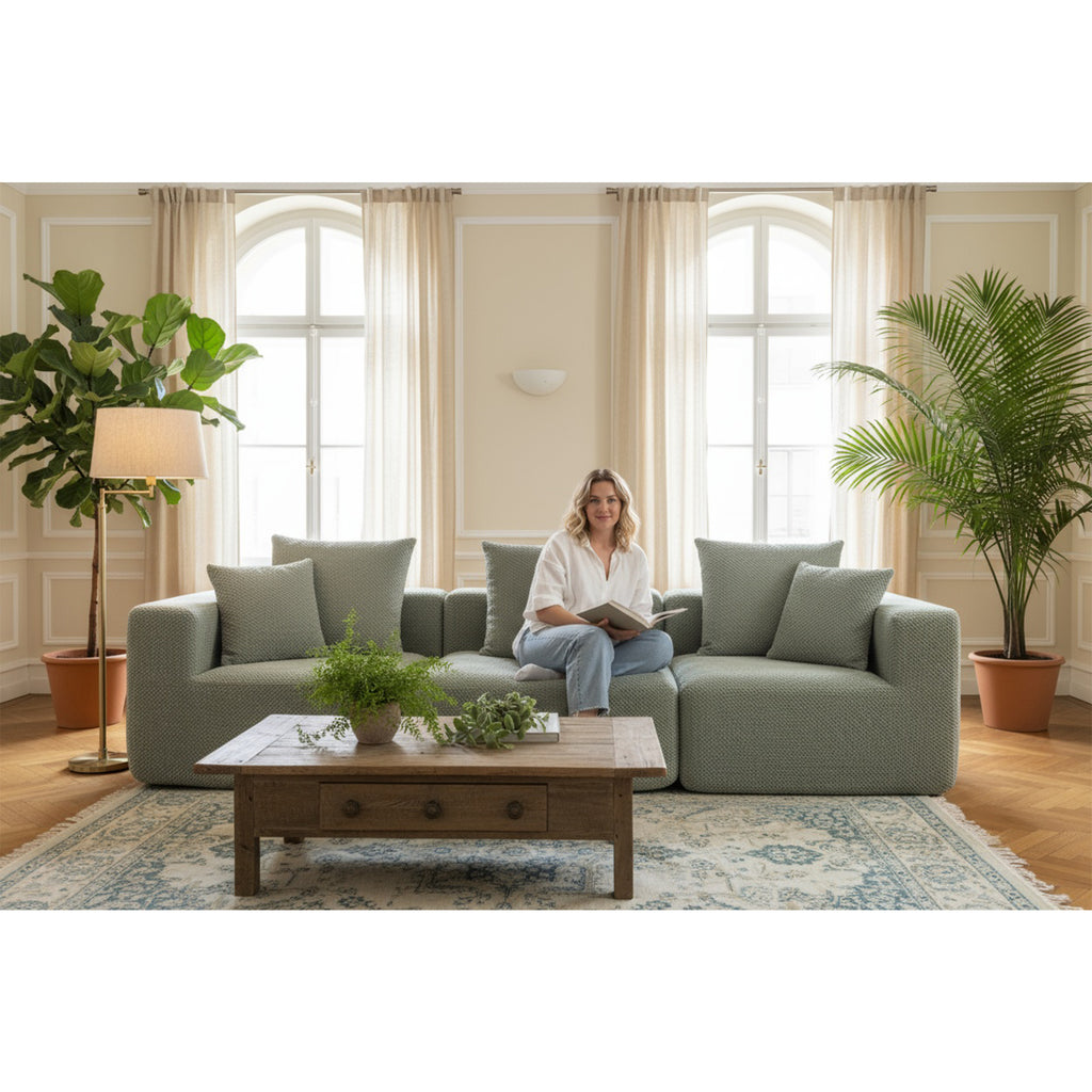 - Oversized Modular Seating: 3-seat, low-profile sectional designed for sprawling comfort and clean modern lines.