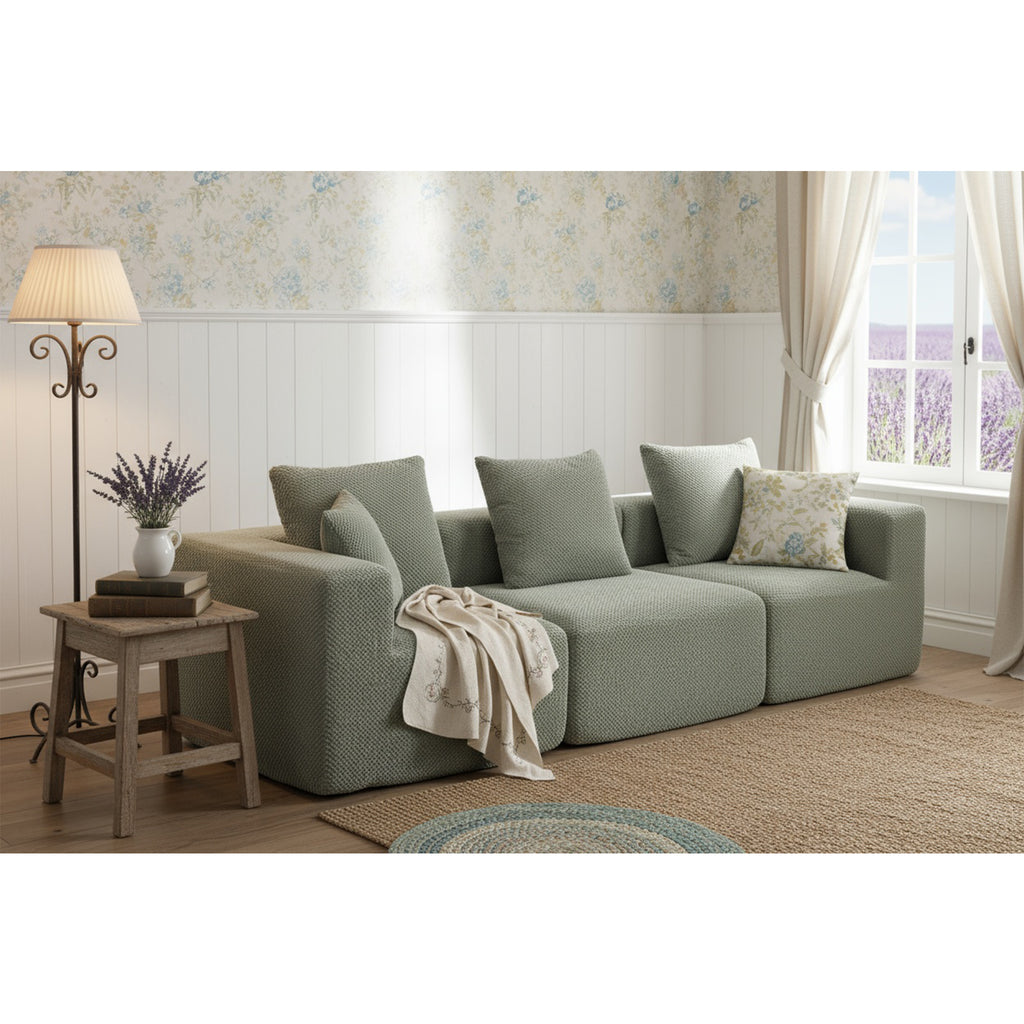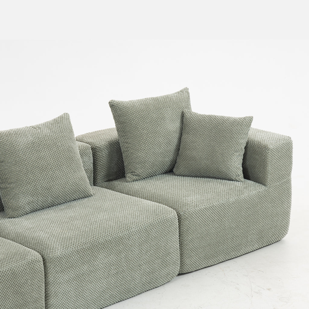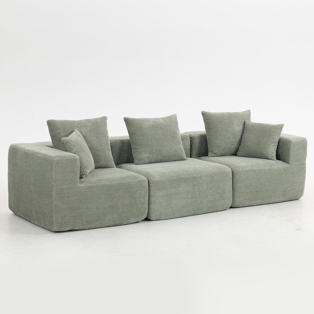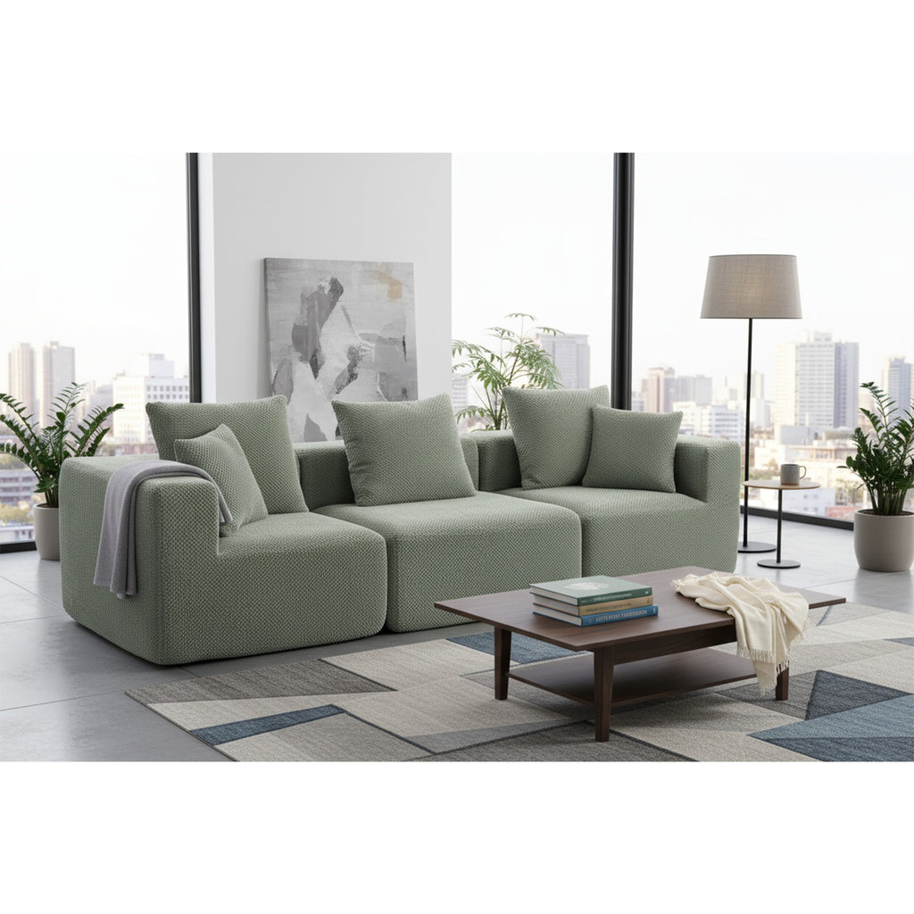 - Oversized Modular Seating: 3-seat, low-profile sectional designed for sprawling comfort and clean modern lines.