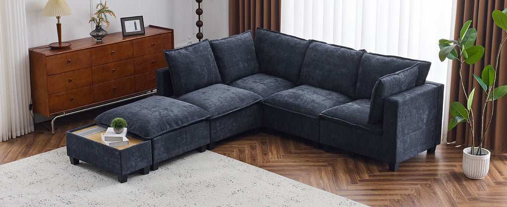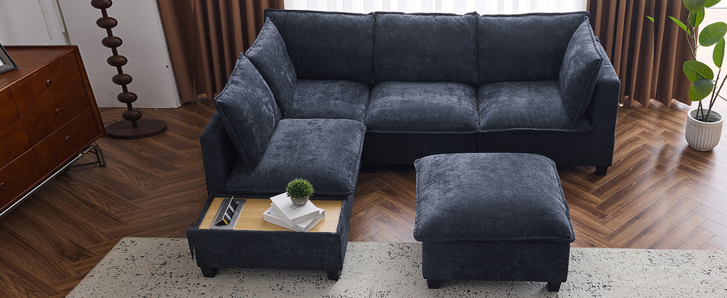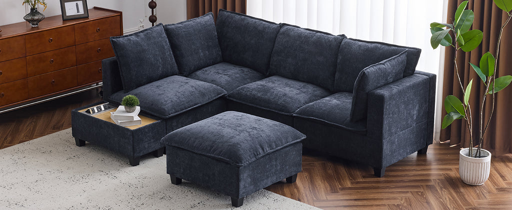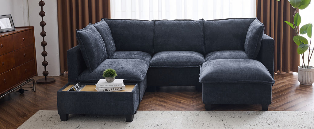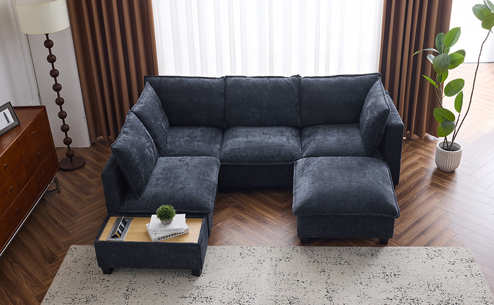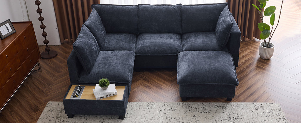 - Free Configurations -This sofa offers exceptional flexibility with its innovative design that allows you to effortlessly reconfigure it into either a U-shaped or L-shaped layout. Whether you're hosting a large gathering, enjoying a cozy movie night, or creating a more intimate seating arrangement, this sofa adapts to your space and needs. The ottoman and coffee table are easy to move and arrange, making it perfect for both spacious living rooms and more compact areas.