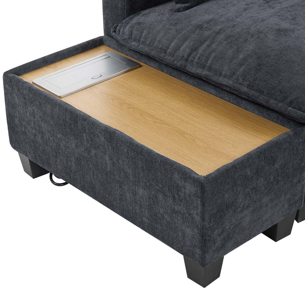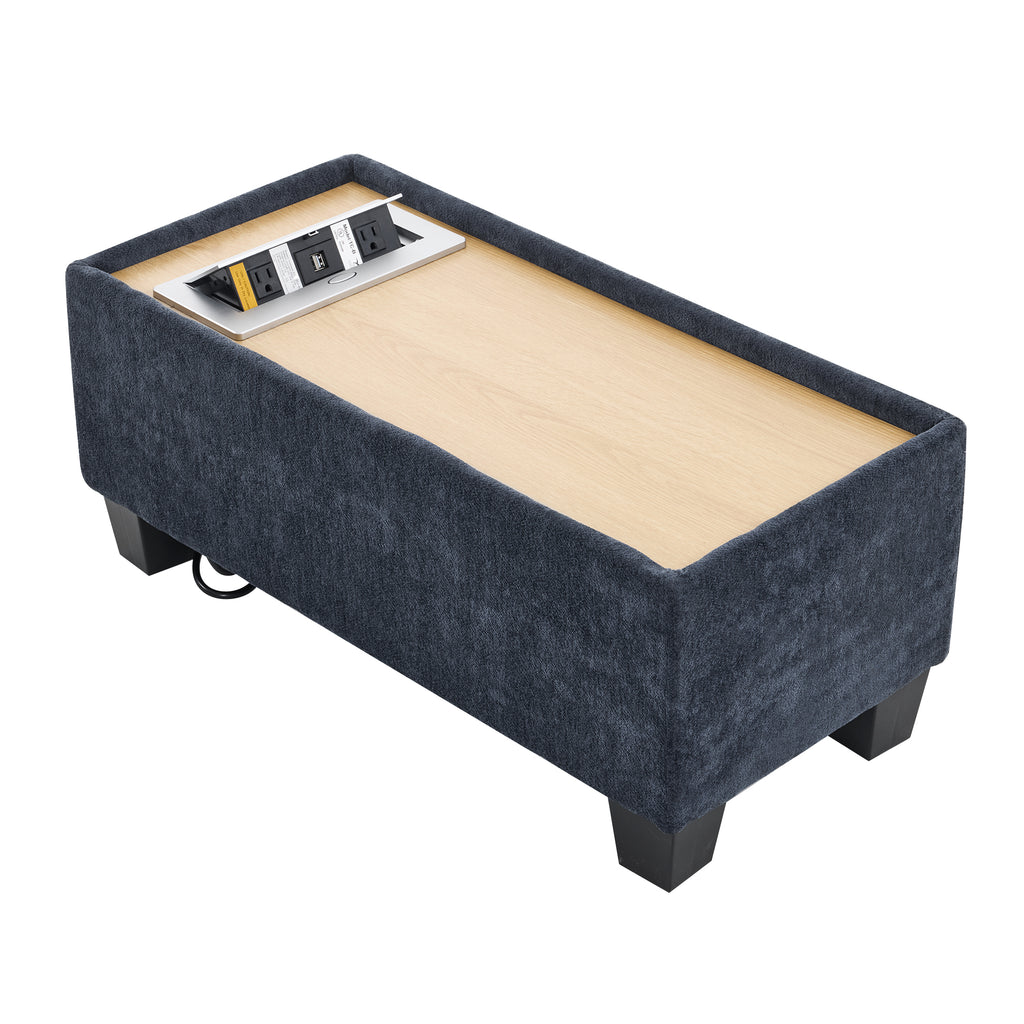 This sofa is paired with a highly versatile, movable coffee table that offers exceptional flexibility for your living space. Not only can it serve as a comfortable ottoman, providing a soft place to rest your feet, but it can also function as a practical side table for holding snacks, drinks, or other essentials. Plus, the coffee table that features a discreet, built-in charging device. When you need to charge your devices, simply access the hidden charging port; when not in use, it can be neatly concealed to maintain a clean, sleek look.
