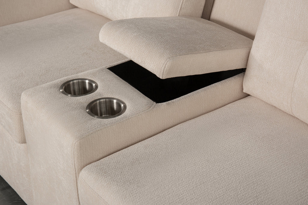 - Equipped with built - in dual stainless steel cup holders and a hidden storage compartment in the armrest, providing convenient space for beverages and small items while keeping the surface tidy.