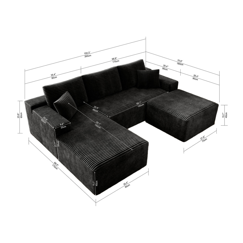• Modular Sectional Sofa:This sectional sofa featuring a sleek design, clean lines, and high-quality plush corduroy Fabric,This sectional set maximizes space when placed against a wall,this corner sofa effortlessly adds a timeless and sophisticated touch to your home. Designed to be the focal point of attention, it's an ideal choice for elevating the ambiance of living rooms, apartments, and bedrooms.