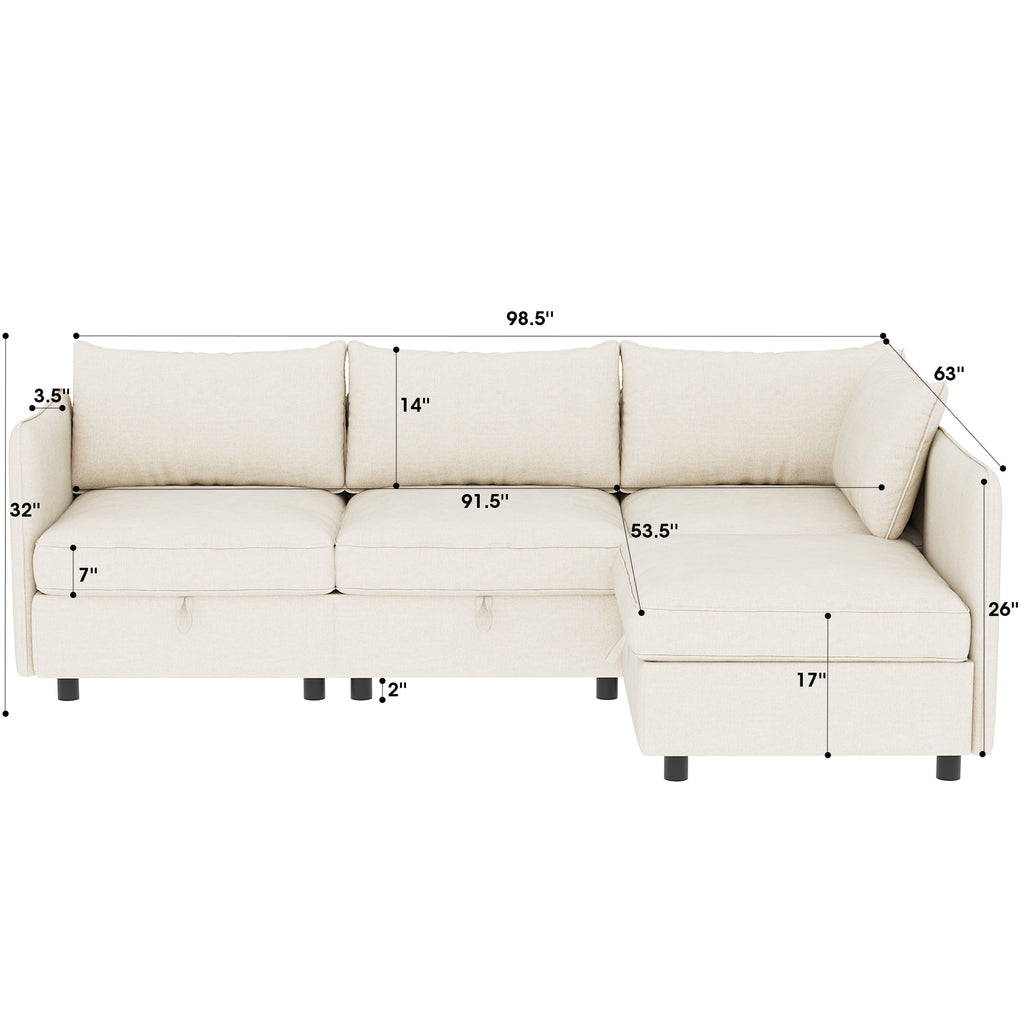 - Each modular couch has a storage function under the seat cushion. You only need to gently remove the seat cushion and seat panel . It can store books, blankets, clothes and any other items to make the room tidy.