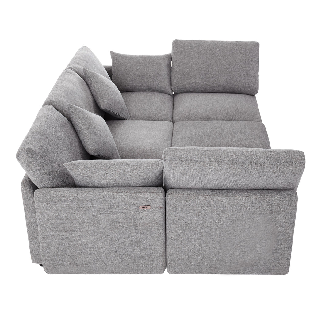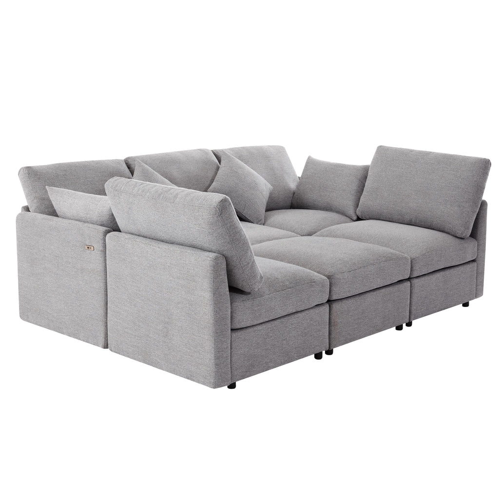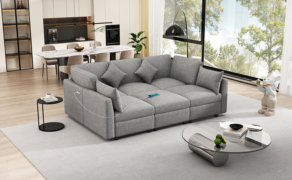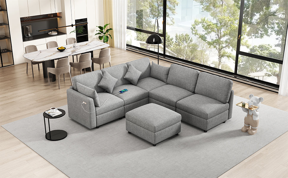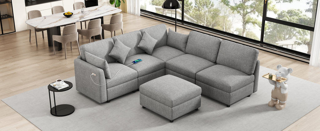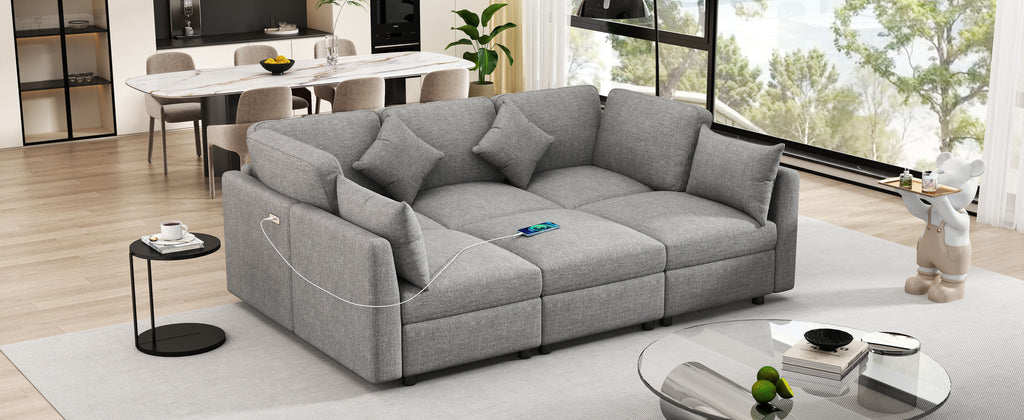 This modular sectional sofa, with its multifunctionality and flexibility, is perfect for any modern living room. It can easily be configured into an L-shaped sofa, a U-shaped sofa, or a sofa bed, allowing you to adjust the style based on your room's needs. This beautifully designed sofa is wrapped in soft chenille upholstery, filled with high-density foam, and supported by a spring system to provide a comfortable seating experience. Additionally, the two USB charging ports enhance overall convenience. Just enjoy this versatile sectional sofa!
