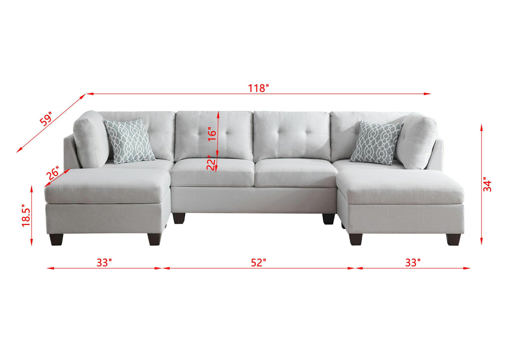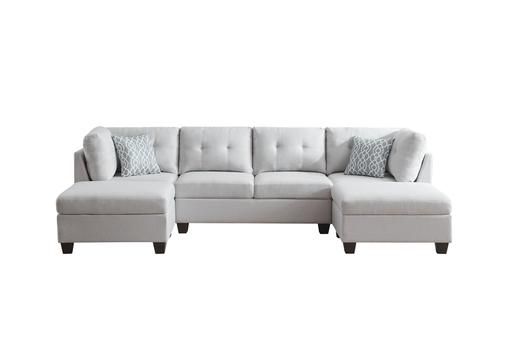 - Double Chaise L - Shaped Sectional Sofa with Tufted Seating, Accent Pillows and Upholstered Comfort for Spacious Living Rooms