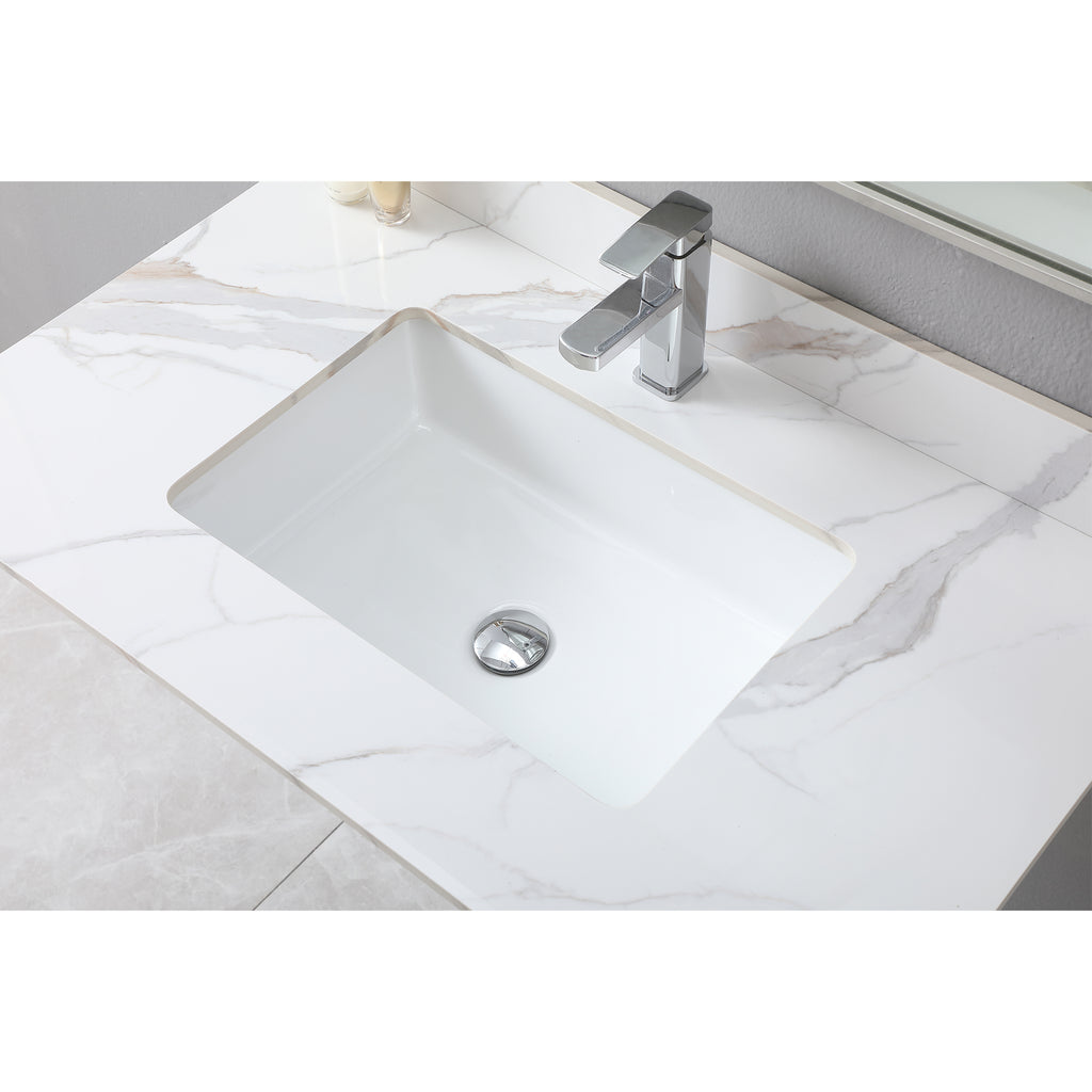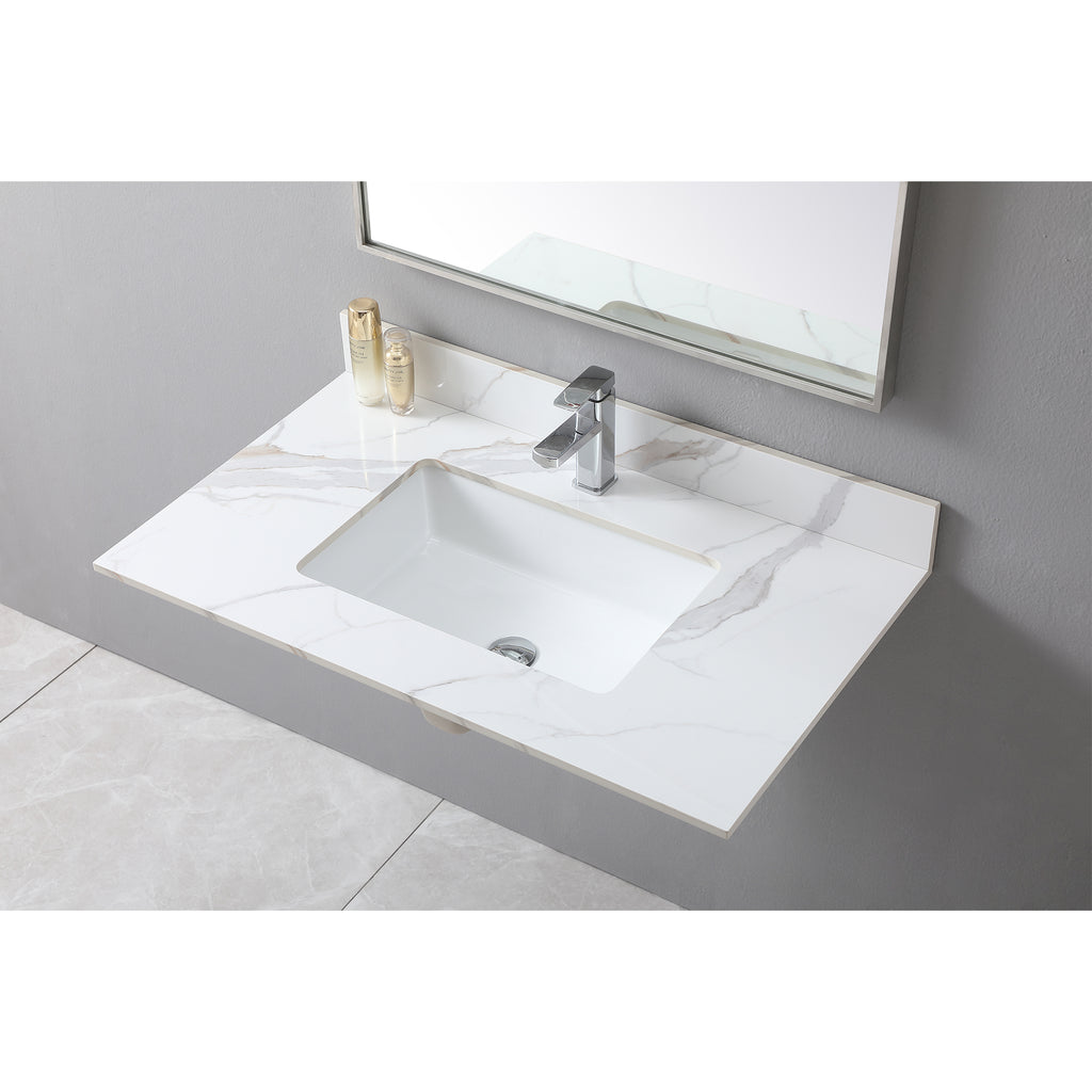 - [Easy to Installation] Top pre-drilled faucet Assembled stylish rectangular white vitreous china under mount bowl with safety overflow hole This top is perfect for quick and easy remodels Obtain the beauty and durability of marble without hiring a professional