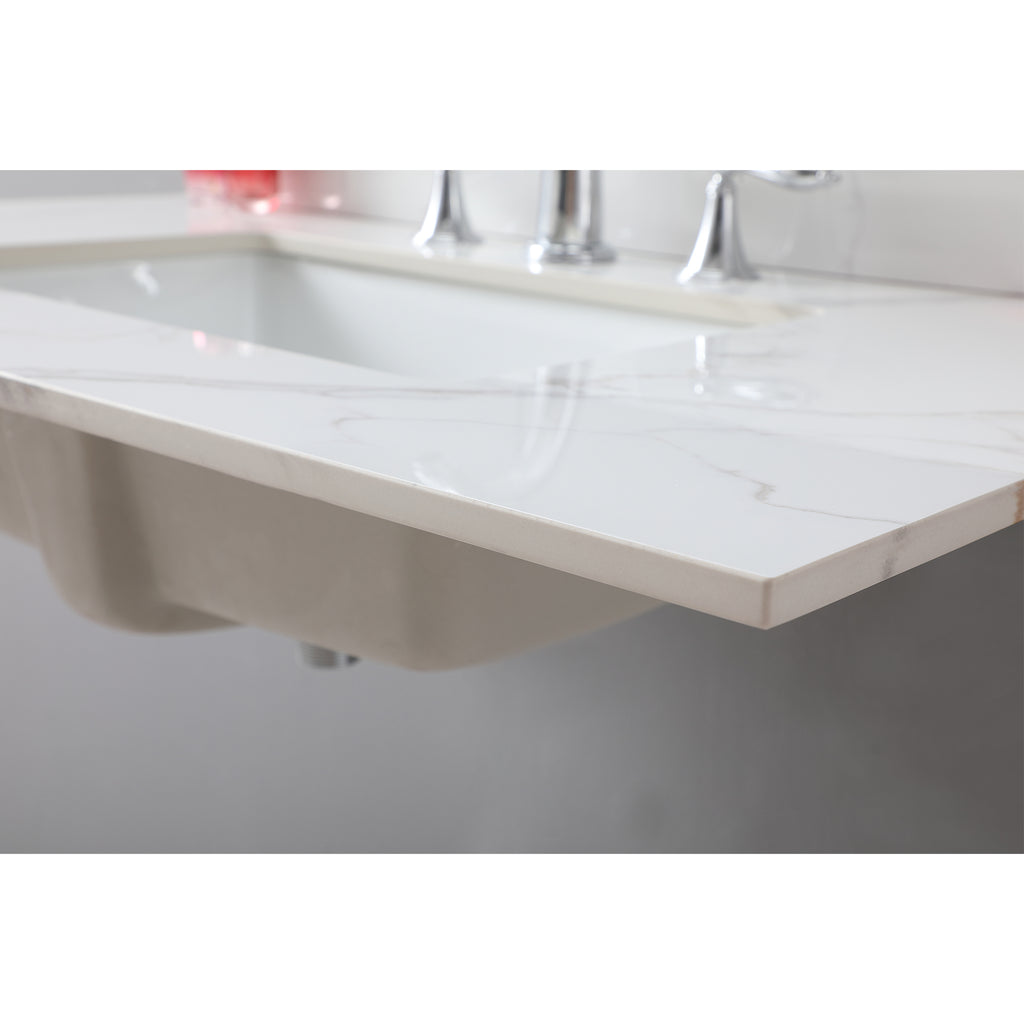 - [Easy to Installation] Top pre-drilled widespread faucet Assembled stylish rectangular white vitreous china under mount bowl with safety overflow hole This top is perfect for quick and easy remodels Obtain the beauty and durability of marble without hiring a professional