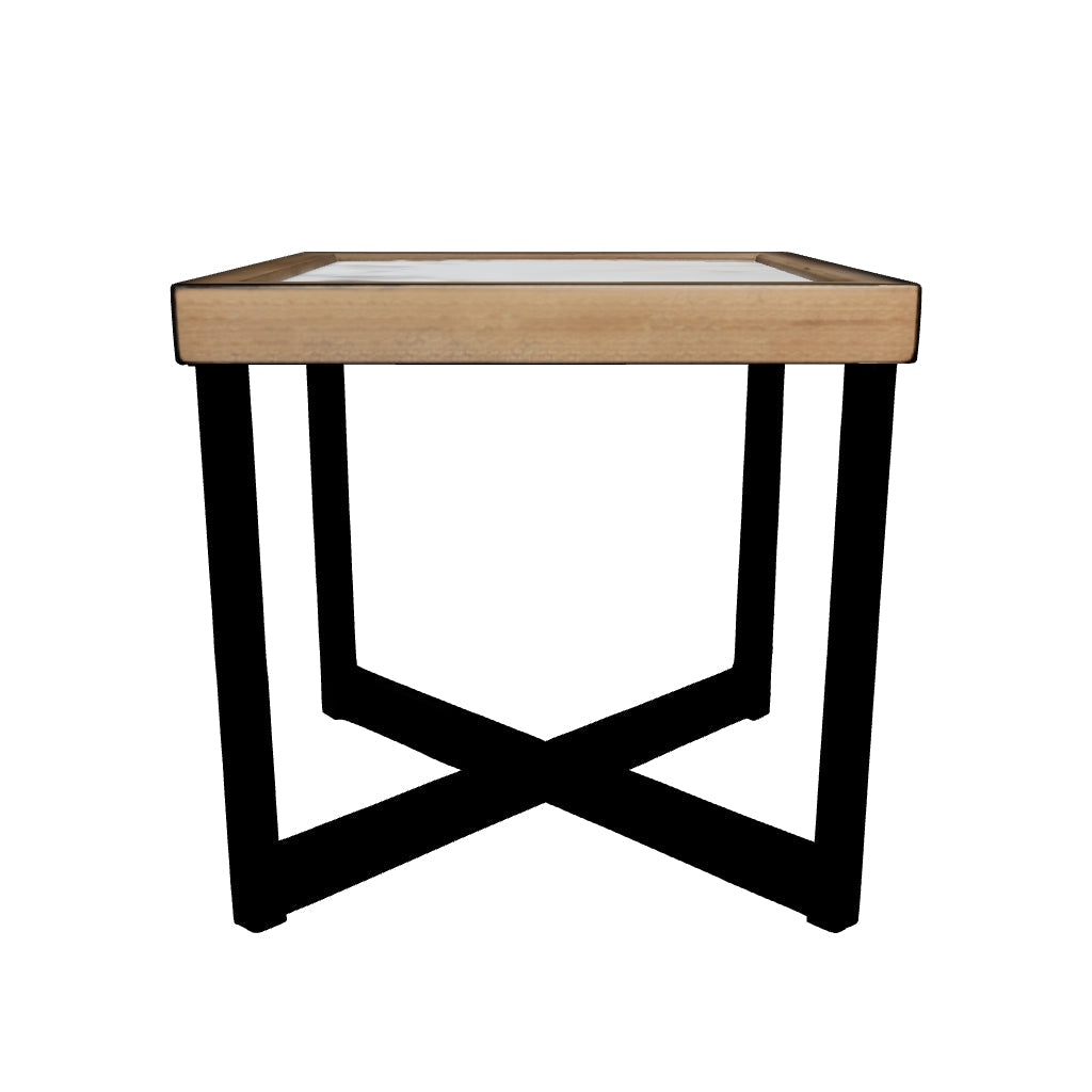 Crafted with the utmost attention to detail, this end table boasts premium materials that ensure both durability and elegance. The tabletop's sintered stone tile not only creates a visually appealing look but enhances the table's robustness. Whether you're hosting guests or unwinding with a steaming cup of coffee, this table instantly adds a touch of sophistication to your living space.