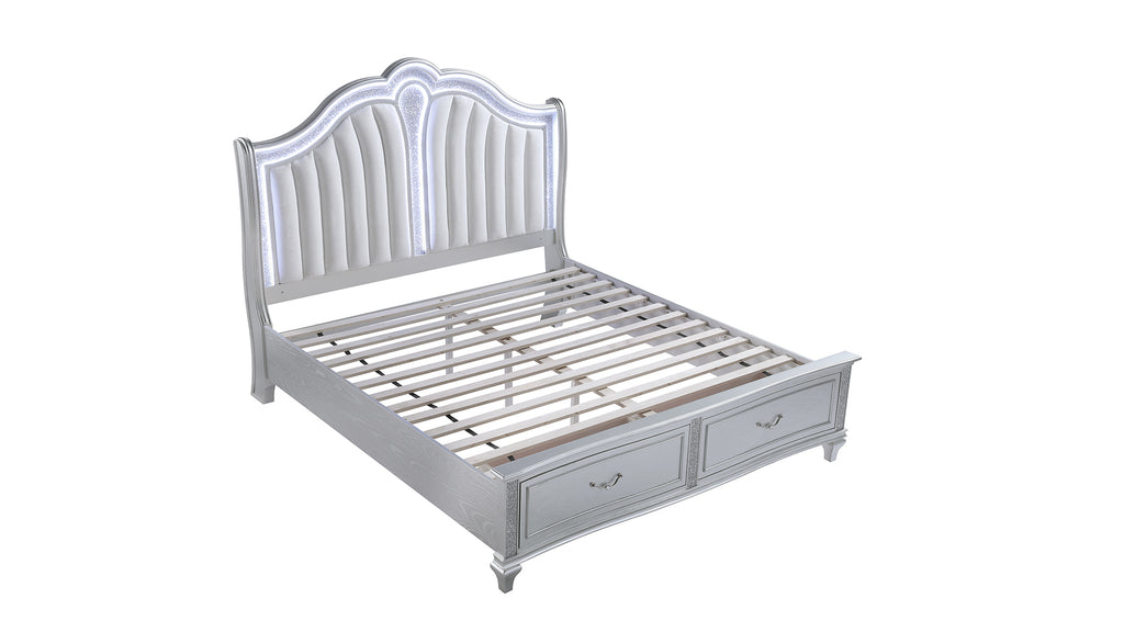 Mystic King 5PC Contemporary Upholstered LED Bedroom Set Silver Wood