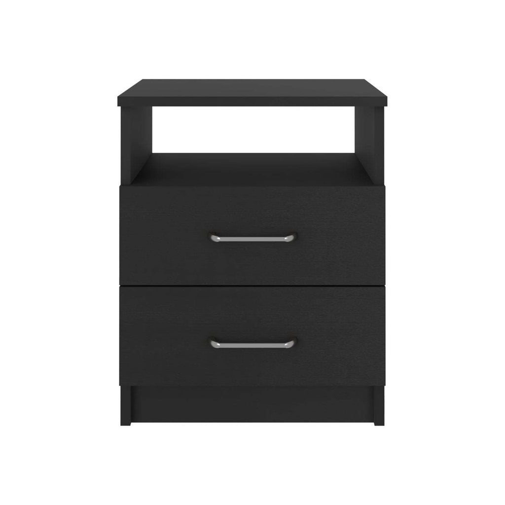 Napoles Black Nightstand End Side Table Superior Top Two Drawers Shelf