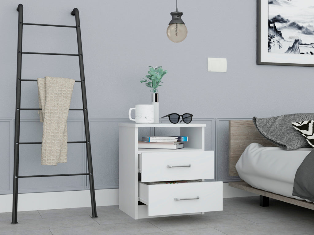 Napoles White Nightstand, End Side Table, 2 Drawers, 1 Shelf