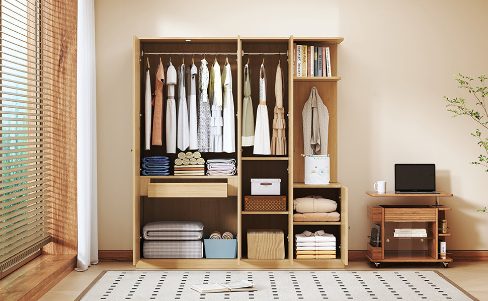- Ample Storage Space:Offers two dust-proof wardrobe compartments with hanging rods, one pull-out storage drawer, and an additional door for shoe storage—ensuring rich storage capacity to meet diverse organizational needs.