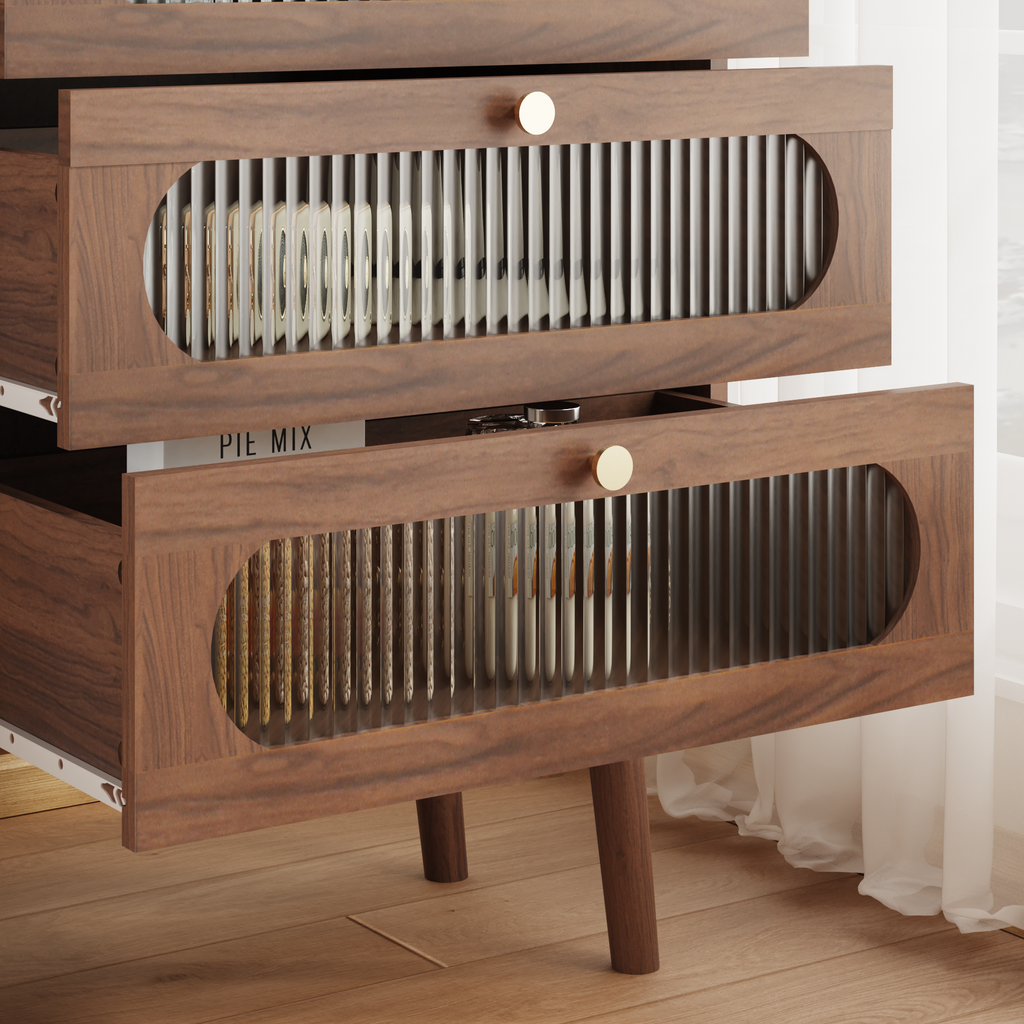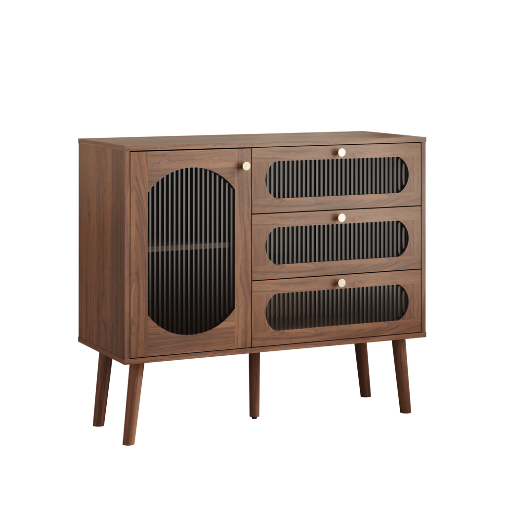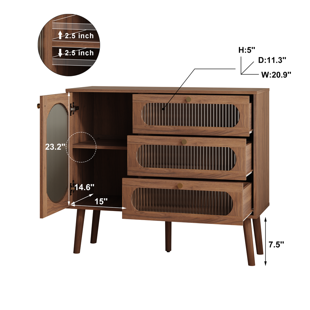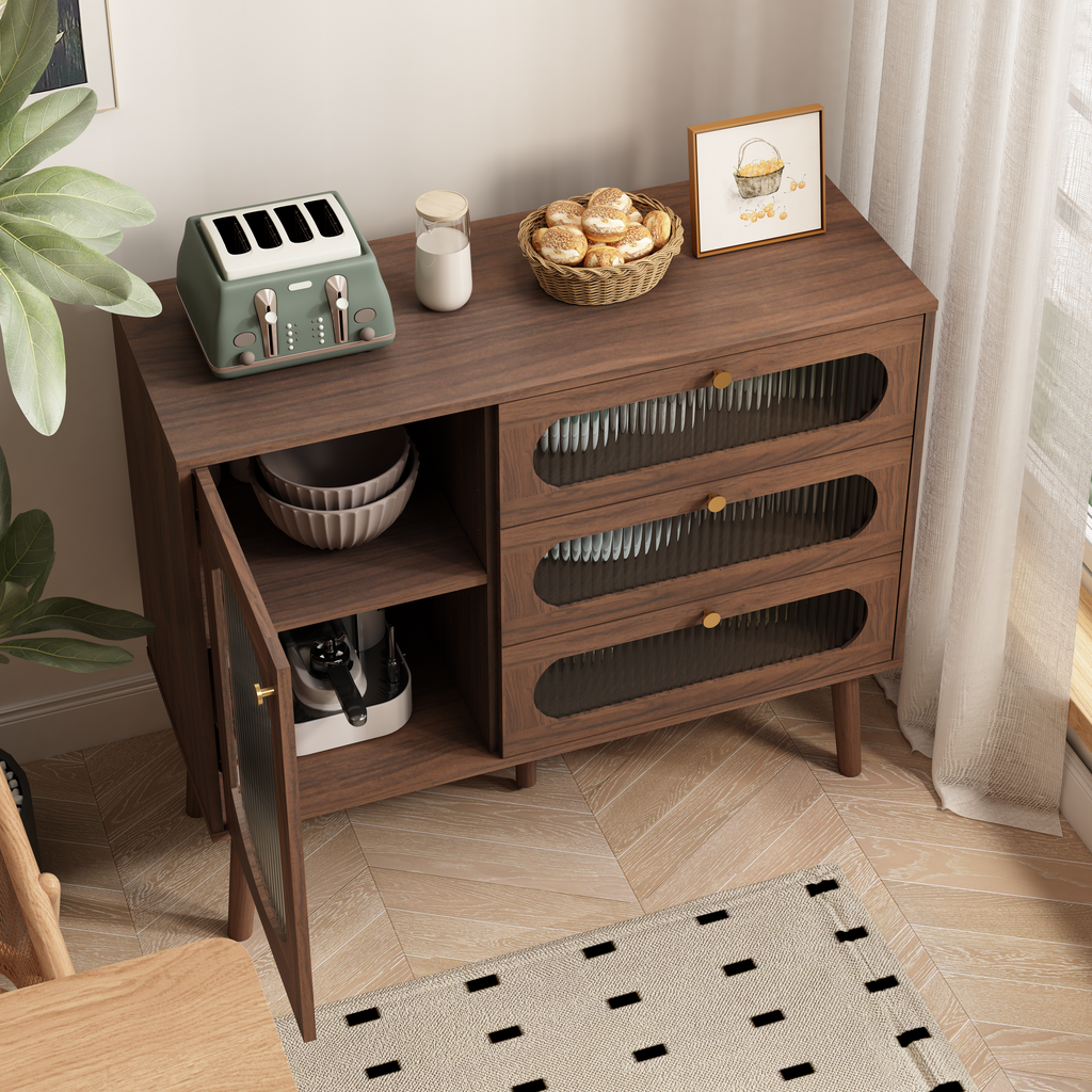- 【Spacious Storage Capacity】 Always a mess? Your storage boxes, tableware, daily items can all be stored in this cabinet with such sufficient storage options. Equipped with 3 practical drawers and 1 useful side cabinet, this storage cabinet provides plenty of space to keep everything in order and accessible.
