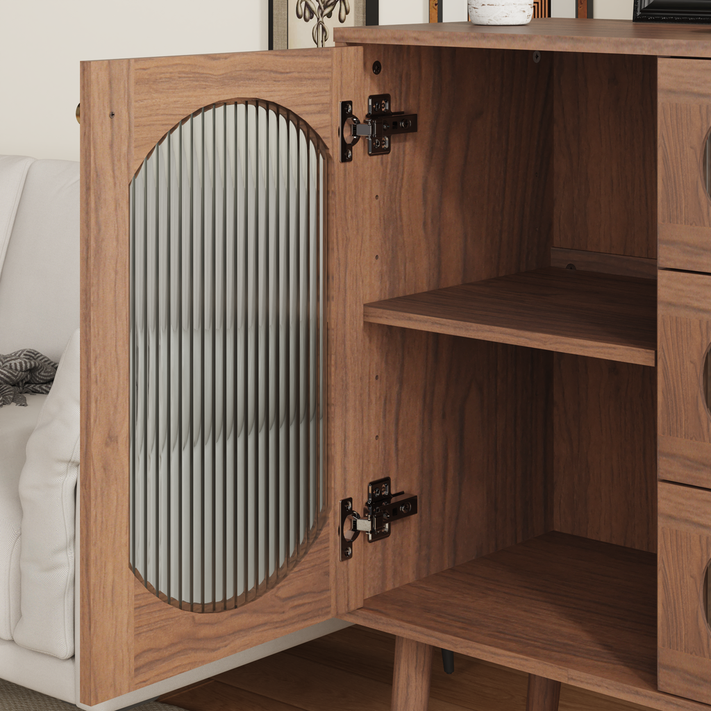 - 【Classical Accent Storage Cabinet】The retro natural finish and wood handles combine aesthetics and practicality. Neatly carved lines add a charming appeal to the entire cabinet.