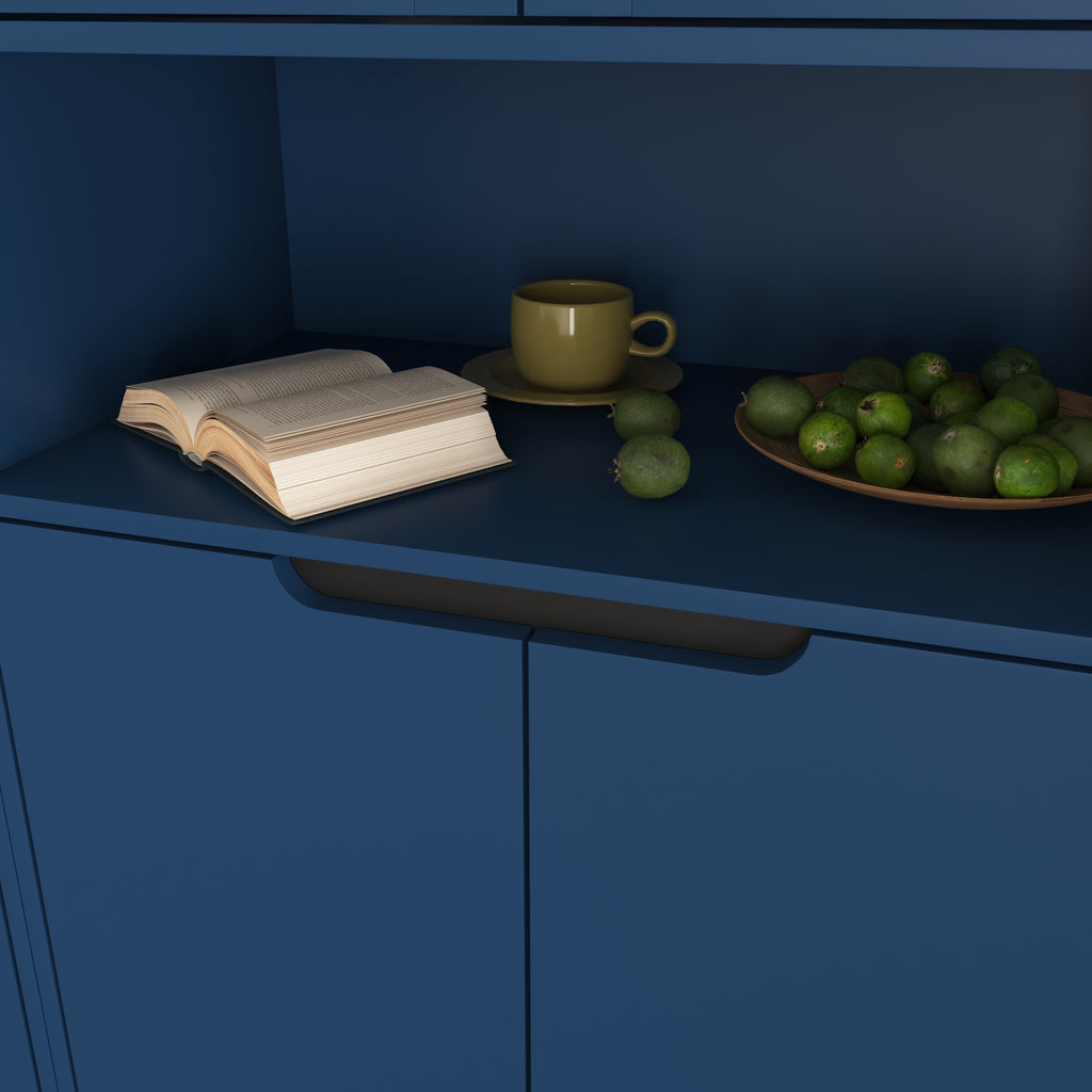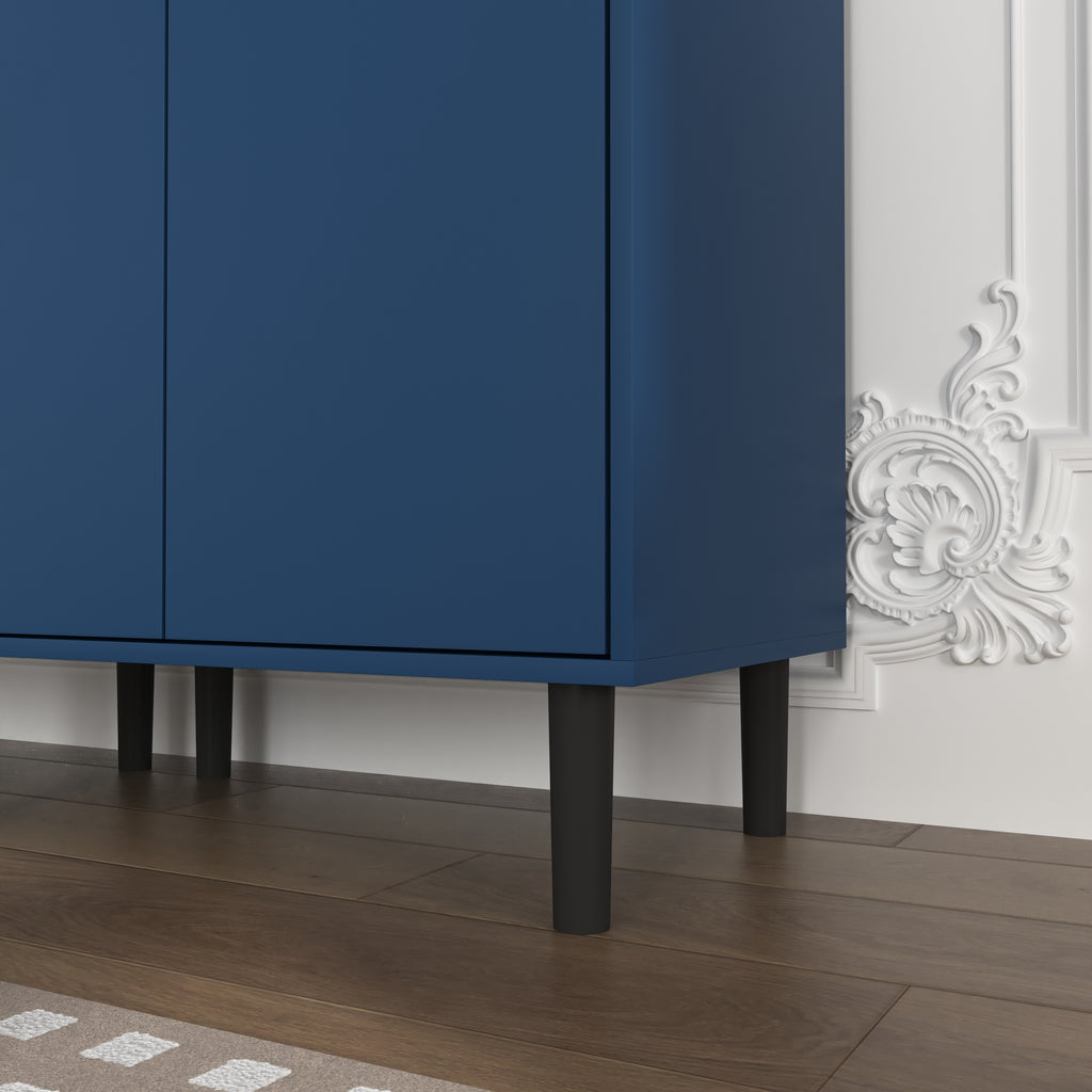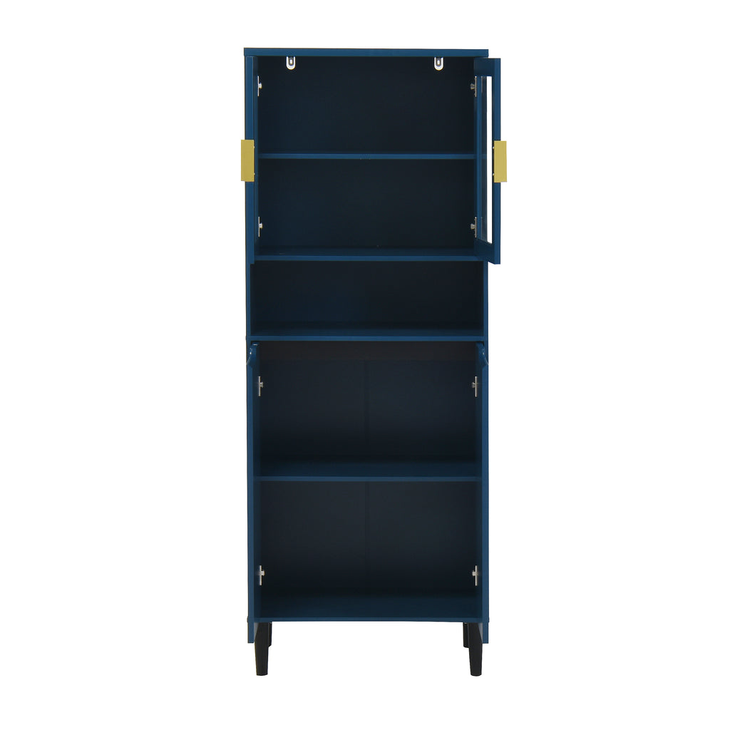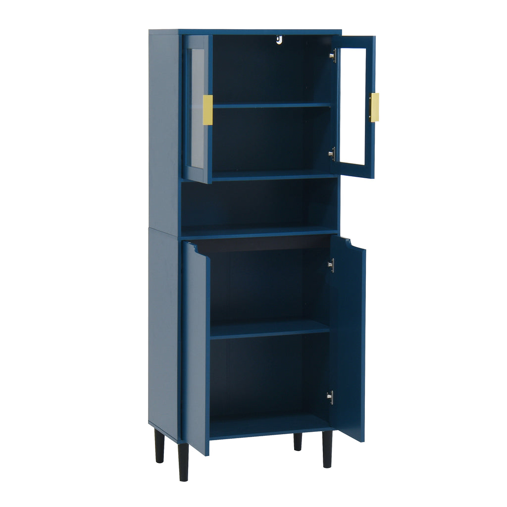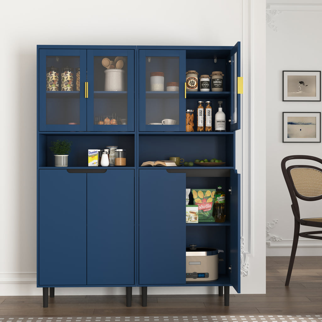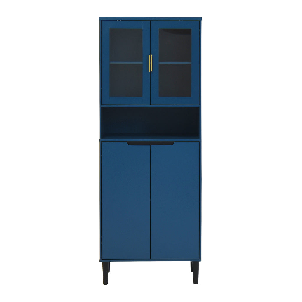 - With its elegant yet chic appearance and classified practical design, this blue cabinet is suitable for various places: living room, kitchen pantry, bathroom, office, entryway, or any corner, even as buffet cabinet at dining room. Moreover, the top storage cabinet is equipped with two glass doors, allowing it to be used as a filing cabinet, display cabinet, or bookcase in a home office.