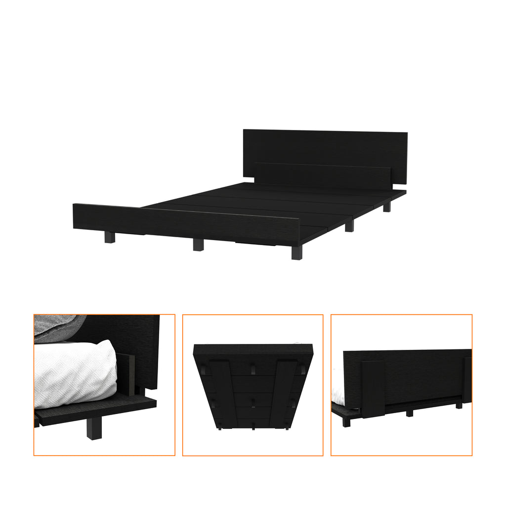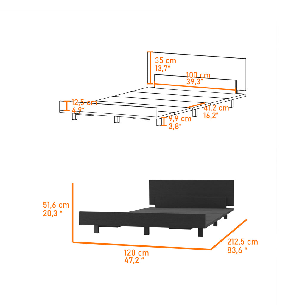 The black wengue finish offers a modern and sophisticated look, blending dark and light tones to create a stylish, contemporary aesthetic that complements various décor styles. The twin bed features a streamlined rectangular design, ideal for small rooms or guest spaces, and supports a mattress directly, eliminating the need for a box spring while providing a sturdy and comfortable sleep surface.