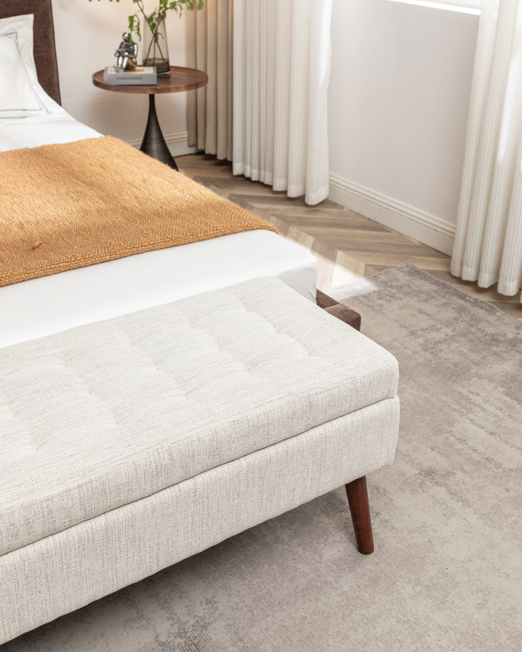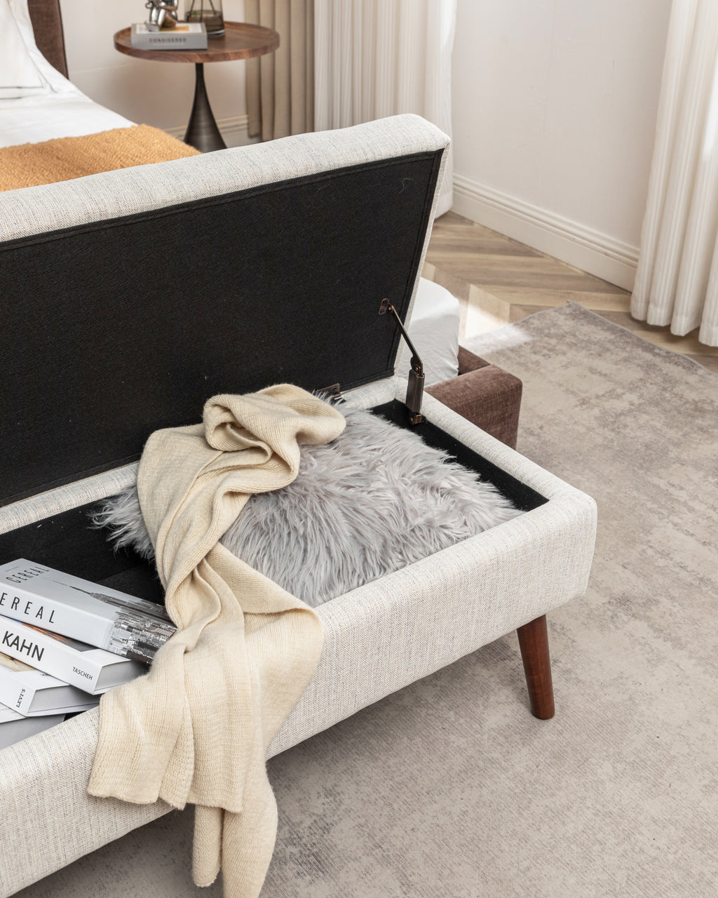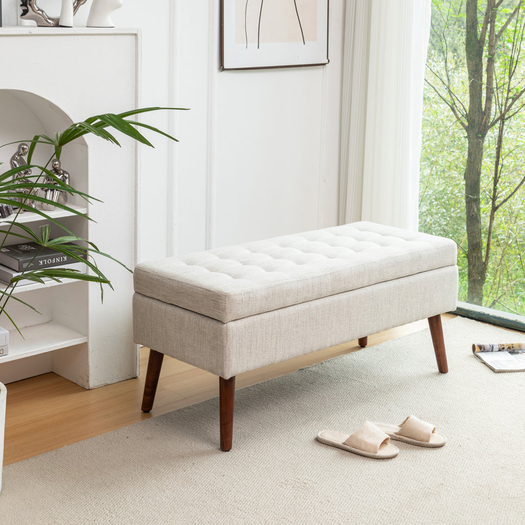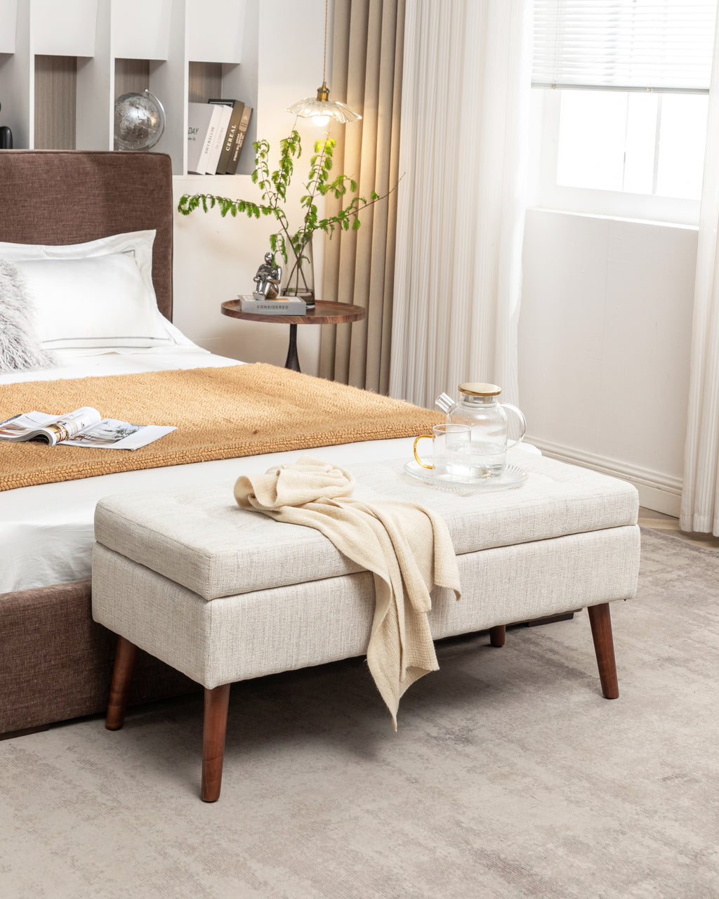 - Storage ottoman bench: The bedroom bench with storage can bring a lot of convenience to your life, used as an entryway bench with storage, bedroom end of bed bench, foot of bed bench, for bedroom, be placed at the waiting area of a shop for guests to sit. The tufted beige bench storage bench for bedroom end of bed design can be lifted off and falls slowly with safety hinge.