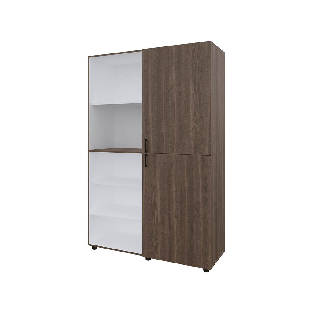 - Two-door design with a combination of open and closed storage for versatile organization.