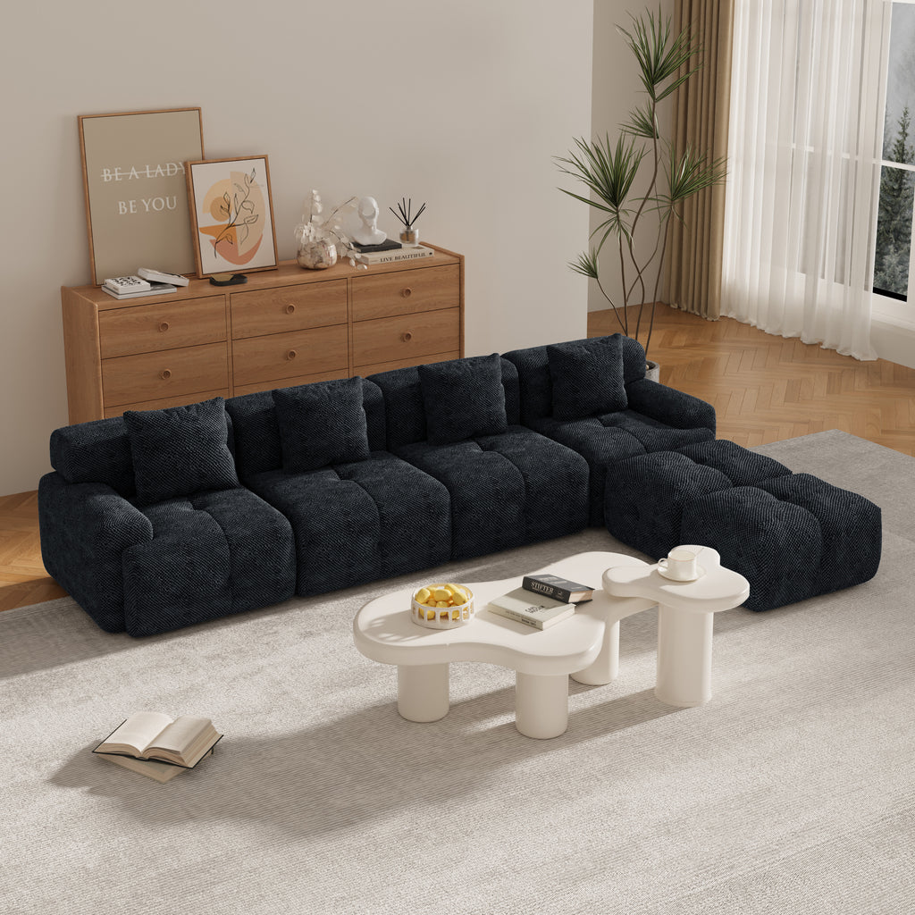 - 【Flexible Modular & Convertible Layout】Comes with a 4-seat sofa and 2 movable ottomans, allowing you to easily switch between U-shaped, L-shaped, or sleeper sofa configurations. Perfect for adapting to your space and lifestyle needs.