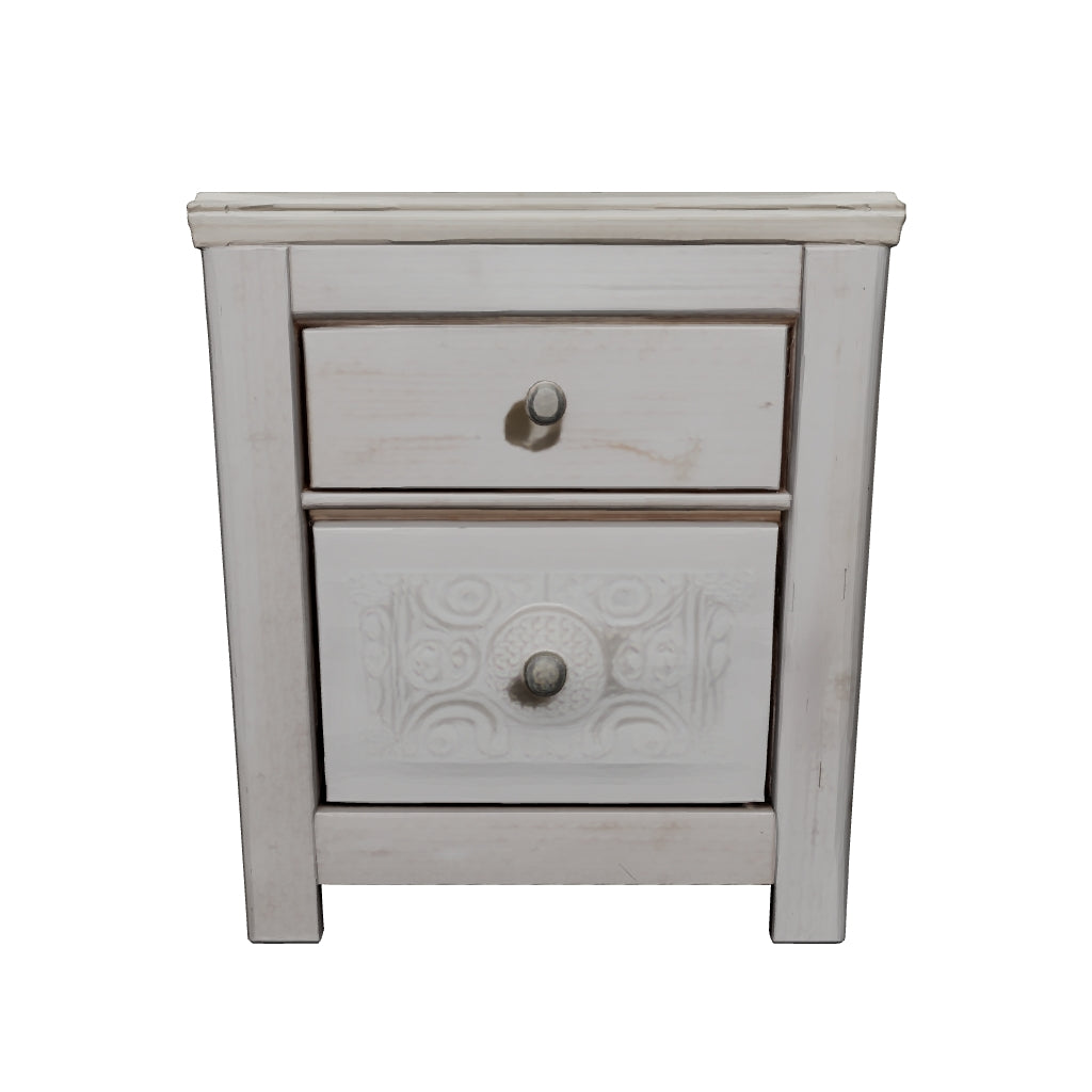 A one-of-a-kind girl deserves a bedroom retreat that celebrates her personal flair—and this nightstand is so befitting. Wowing with artful, carved-effect detailing and richly distressed whitewash finish, this two-drawer nightstand is a dream come true if you’re searching for something delightfully different. And with USB device charging, this nightstand is right up to speed with her high-tech lifestyle.