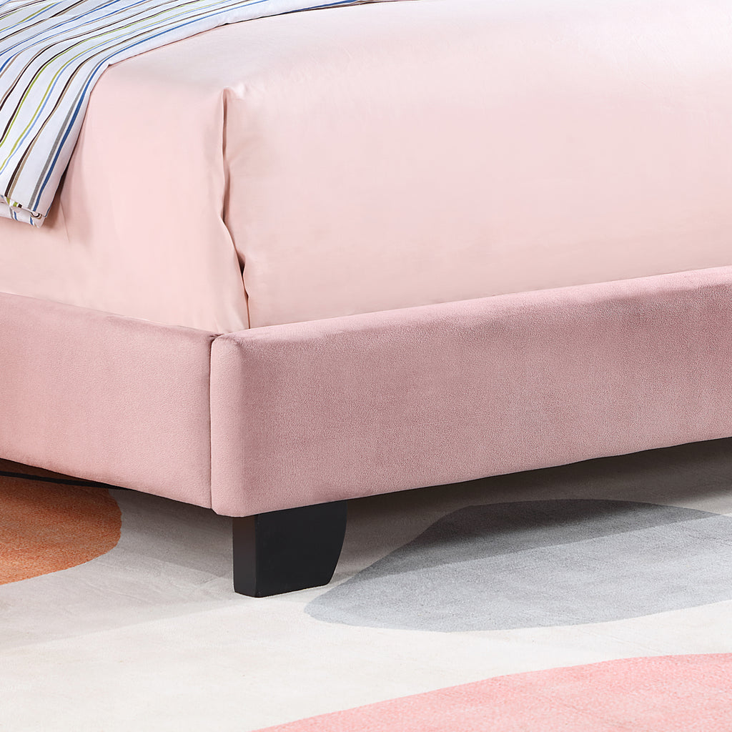 - Upholstered Twin Bed: Available in pink and white, this cute twin bed for children is covered in a subtle velvet material that's gentle on the skin, making it a great choice for both boys and girls. The soft velvet headboard adds an extra touch of luxury and provides a cozy place to rest.