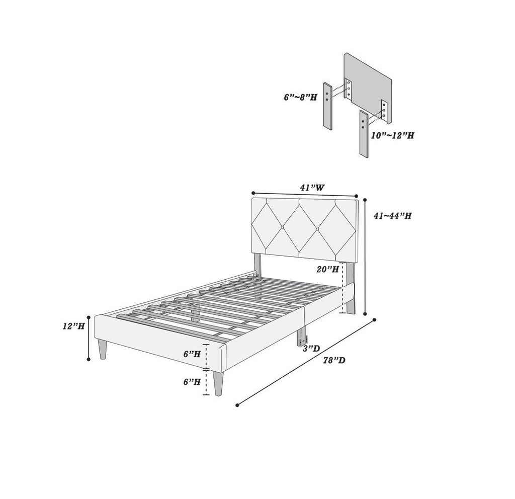 Crafted with plush velvet material, this bed promises a sumptuous experience every night. The headboard boasts exquisite diamond stitching and button tufting, adding a touch of glamour and refinement to your bedroom oasis. We understand that comfort is personal, which is why our innovative design includes an adjustable headboard, allowing you to customize your sleeping experience by raising it up to 3 inches. Whether you prefer a higher headrest for reading or a lower one for lounging, our bed adapts to your preferences effortlessly. The bed features a sturdy 12 slat support system, eliminating the use of the traditional box springs and ensuring unparalleled stability and support for a restful sleep. Available in three modern colors, including timeless neutrals and bold statement hues with a pop of color