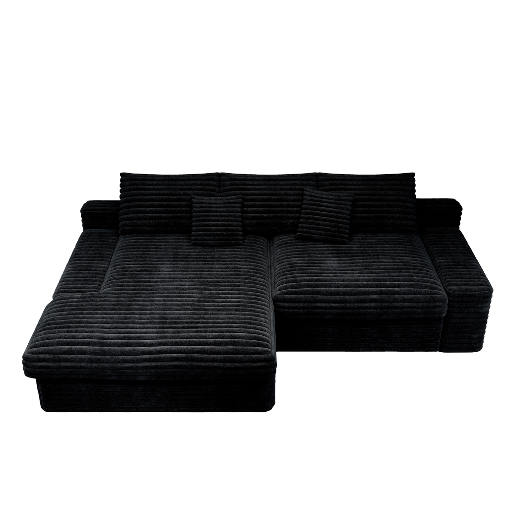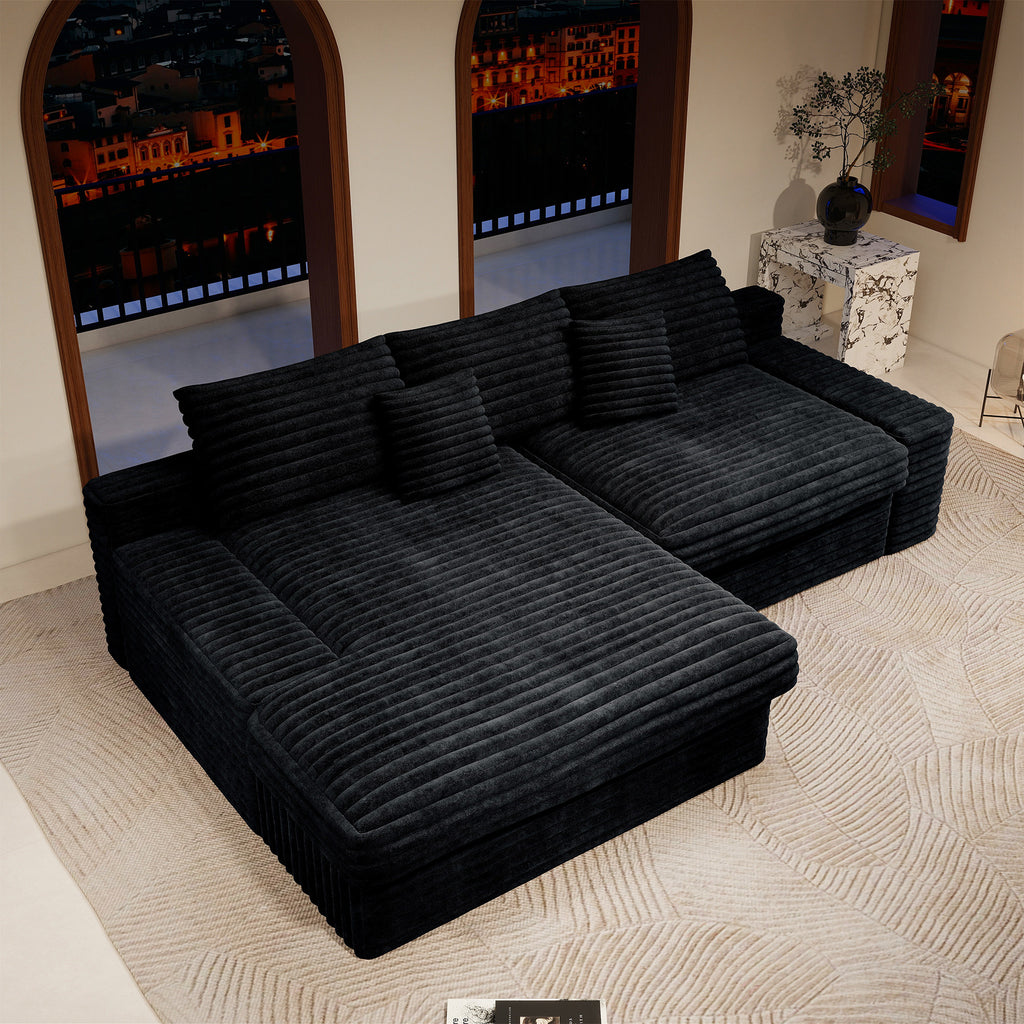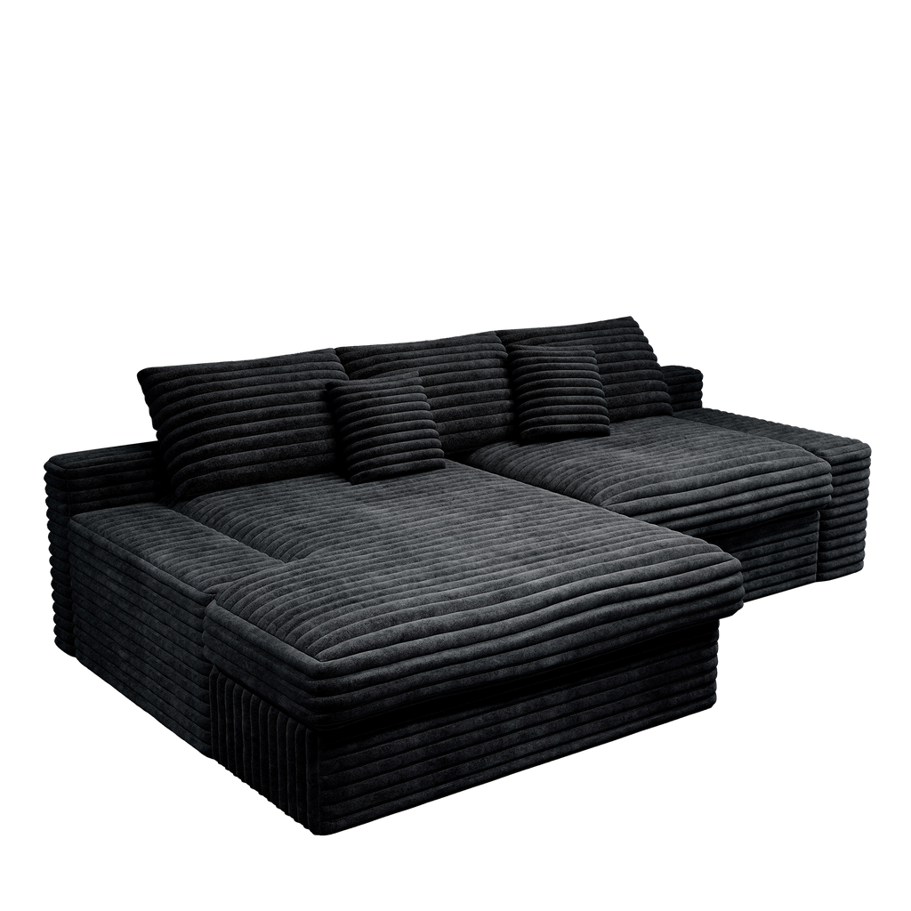 - Comfortable Chaise Lounge Couch:Indulge in luxurious comfort with our reversible sofa set, offering expansive cloud-like seating.Delight in sublime relaxation with our sleeper sofa featuring a chaise, meticulously crafted with a high-resilience sponge structure and spring pack support.Experience seating that contours to your body, surpassing the comfort of traditional sofas.