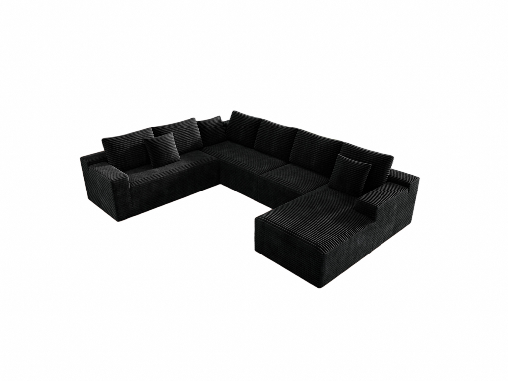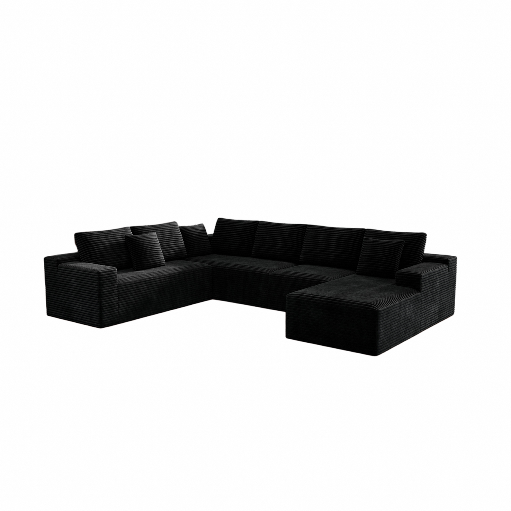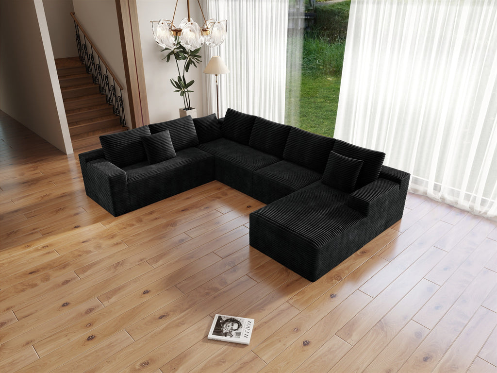 Plush Black Corduroy Modular Sectional Sofa - No Assembly