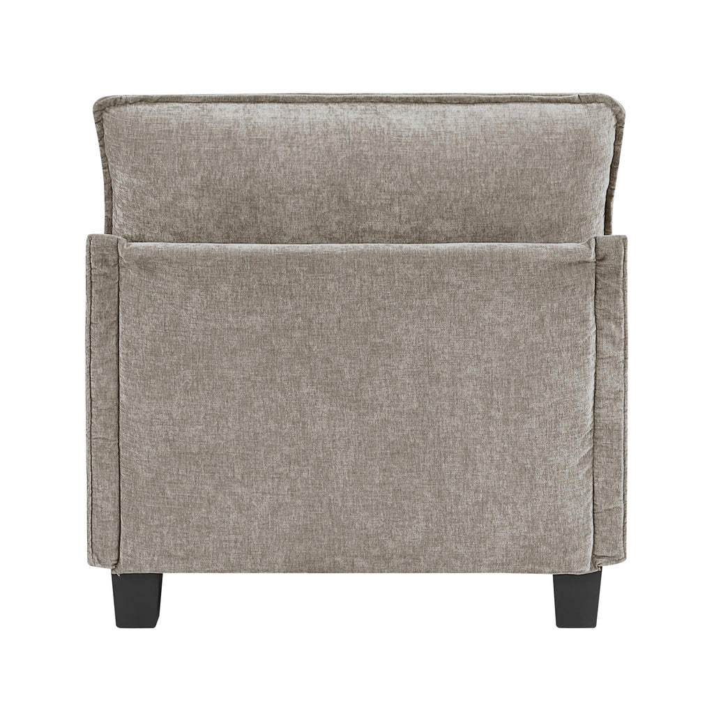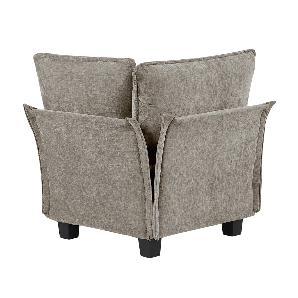 This modular sectional sofa set, comprising three armless chairs and a corner seat, offers the ultimate in flexible seating and contemporary style for your living room. Upholstered in sumptuously soft chenille fabric, each piece provides an inviting texture and a sophisticated aesthetic that seamlessly complements a wide range of interior designs. The exceptional comfort is attributed to high-density foam padding over resilient pocket coils, ensuring consistent plushness and support for years of enjoyment, with a robust weight capacity of 300 lbs per seat. Constructed with durable plywood frames and featuring chic exposed feet with a black faux wood finish, this sectional promises both enduring quality and a refined touch to your home. With reversible back and loose seat cushions, complete with removable zippered covers, maintenance is effortless, ensuring your sectional remains a beautiful and comfortable haven for all.