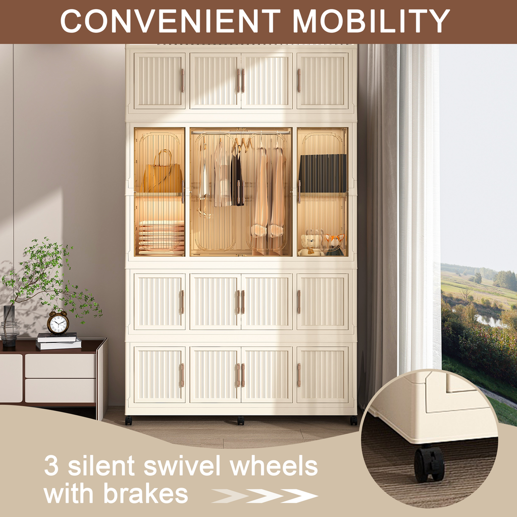 - 【SAFE MATERIAL】Quality you can trust! Our heavy-duty closet wardrobe is made of high-quality PP and ABS materials, guaranteeing durability and reliability. It is more reliable than fabric closets and more cost-effective than wooden ones. Each compartment can hold up to 50 lbs, with the top supporting up to 145 lbs.